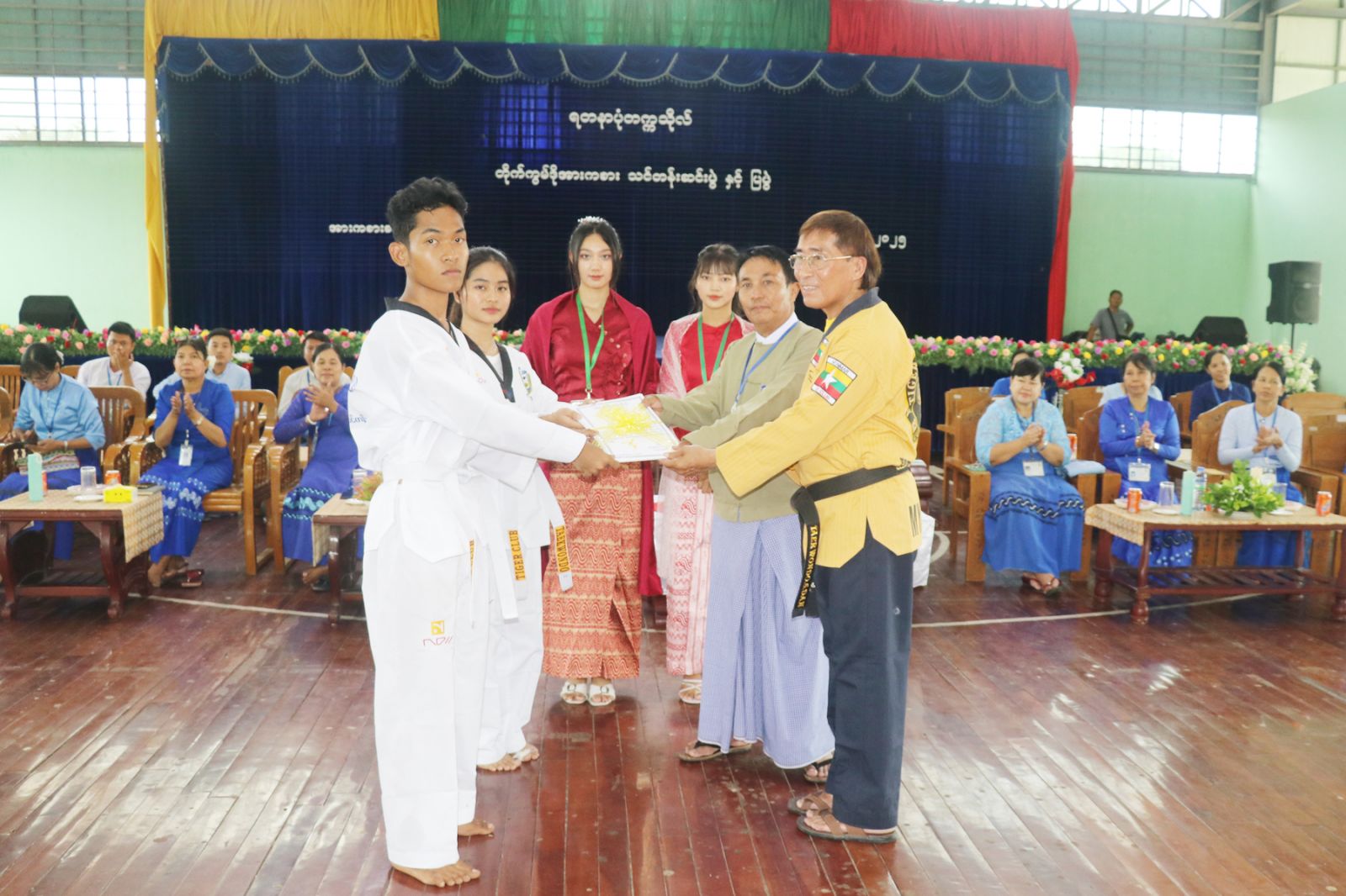 ဆက်လက်ပြီး သင်တန်းသားများက တိုက်ကွမ်ဒိုသရုပ်ပြကွက်များကို တင်ဆက်ပြသကြသည်။ ထို့နောက် ကွမ်ဒိုအားကစားဆပ်ကော်မတီဥက္ကဋ္ဌ ဒေါက်တာအောင်မျိုးထွန်းက ရတနာပုံတက္ကသိုလ်တွင် သင်တန်းပို့ချပေးခဲ့သည့် နည်းပြချုပ် ဦးမြကြိုင်နှင့် သင်တန်းနည်းပြဆရာများအား ဂုဏ်ပြုမှတ်တမ်းလွှာများ၊ သင်တန်းသားများအား သင်တန်းဆင်းလက်မှတ်များ ပေးအပ်ချီမြှင့်ခဲ့သည်။