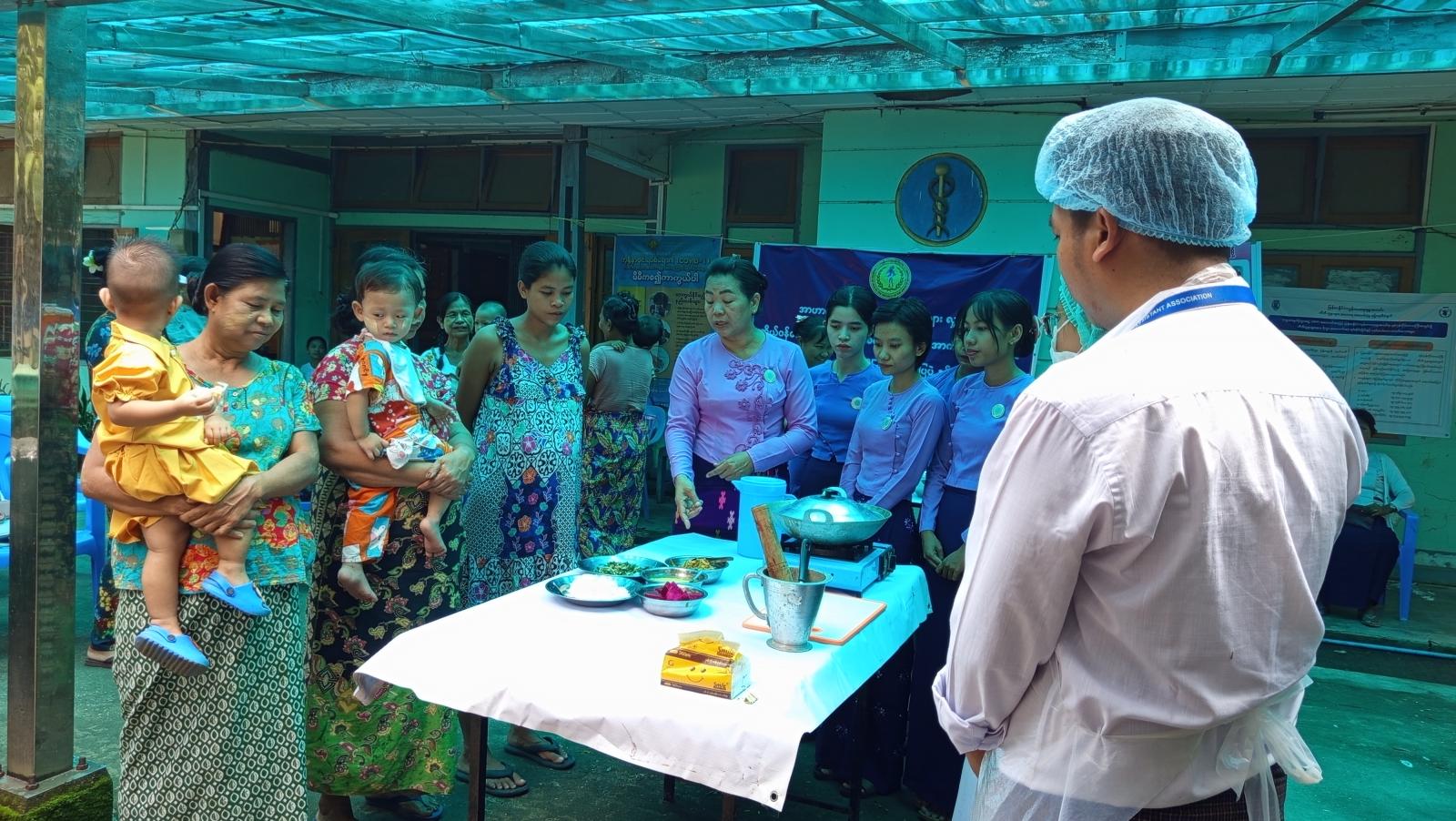 ဆက်လက်၍ ကျန်းမာရေးဝန်ထမ်းများက အာဟာရပြည့်ဝစွာ ပြင်ဆင်ချက်ပြုတ် စားသောက်တတ်စေရန် လက်တွေ့ချက်ပြုတ်သရုပ်ပြပွဲကိုလည်း ဆောင်ရွက်ခဲ့ကြကြောင်း သိရသည်။