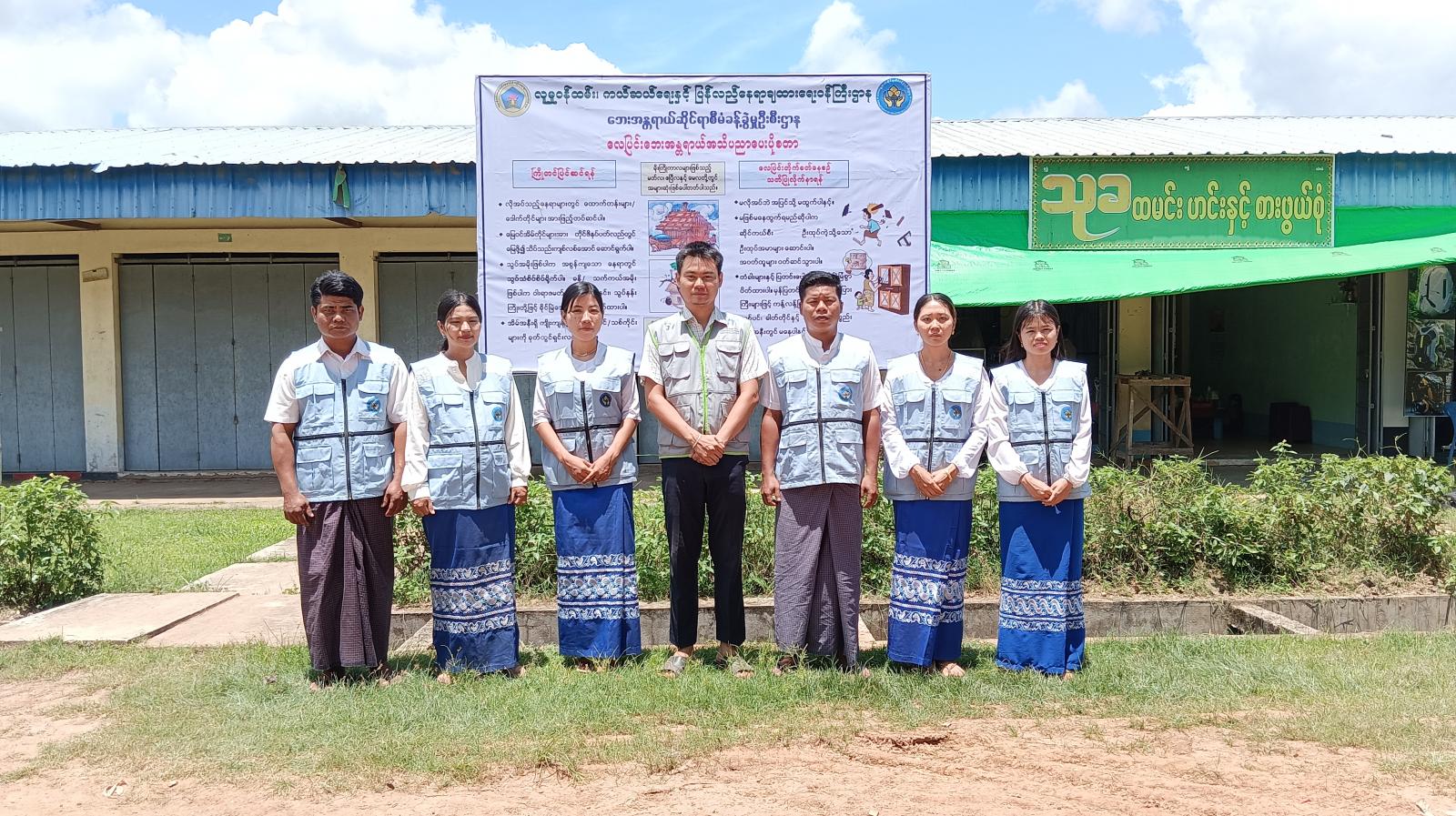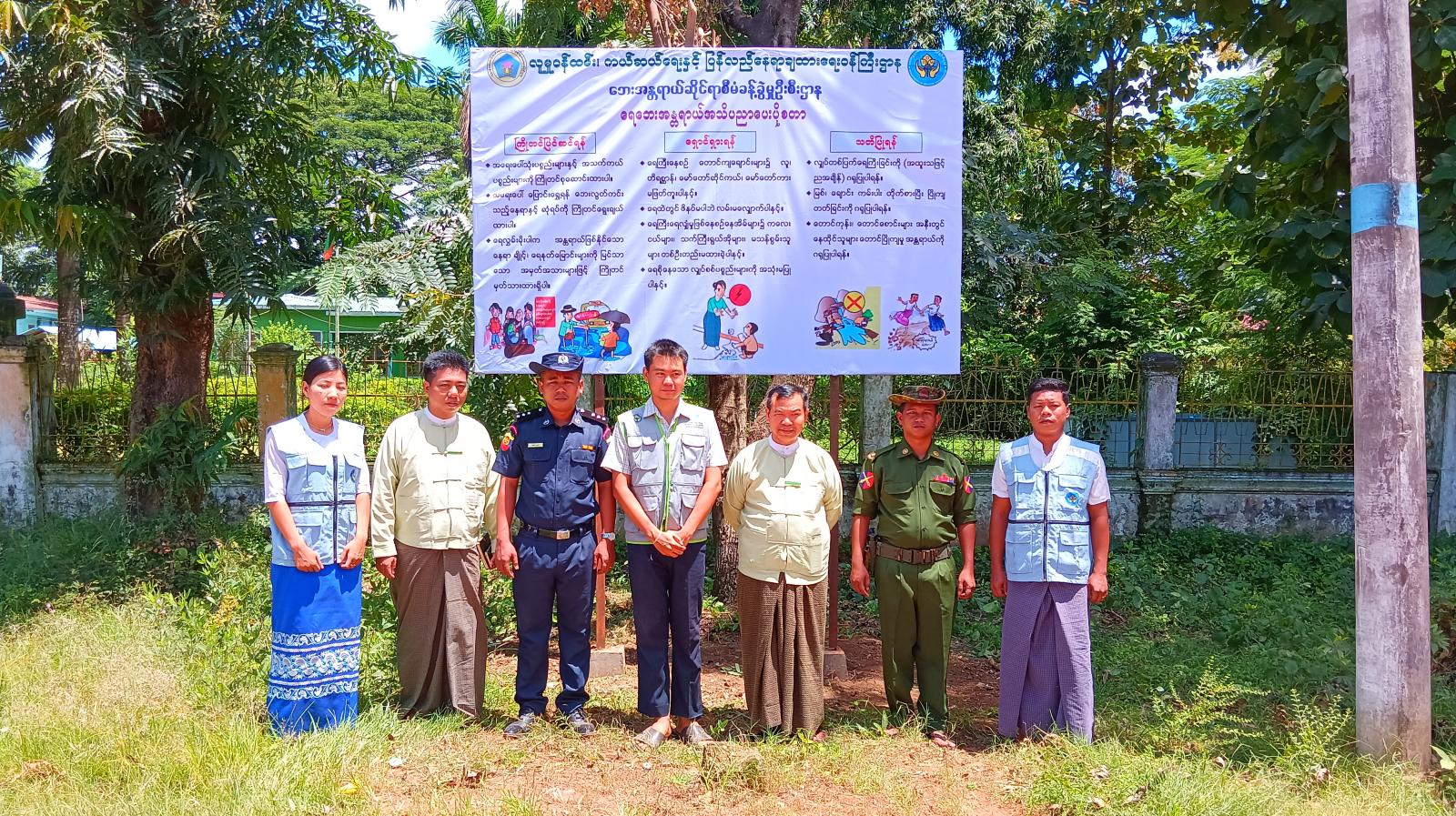 အသိပညာပေးပိုစတာစိုက်ထူရာတွင် မြို့နယ်စီမံခန့်ခွဲရေးနှင့်အုပ်ချုပ်ရေးကော်မတီဥက္ကဋ္ဌ ဦးဖုန်းလွင်၊ အဖွဲ့ဝင် (၁) ဗိုလ်မှူး ထွန်းလင်းထက်အောင်၊ မြို့နယ်အထွေထွေအုပ်ချုပ်ရေးဦးစီးဌာန ဒုတိယမြို့နယ်အုပ်ချုပ်ရေးမှူး ဦးအောင်ဇင်ဦး၊ ဘေးအန္တရာယ်ဆိုင်ရာစီမံခန့်ခွဲမှုဦးစီးဌာန မြို့နယ်ဦးစီးမှူး ဦးသော်ထက်အောင်နှင့်ဝန်ထမ်းများ၊ မြို့နယ်မီးသတ်ဦးစီးဌာနမှ မြို့နယ်ဦးစီးမှူး ဦးသက်ဇော်တို့က ရေဘေးအန္တရာယ်နှင့် လေပြင်းဘေးအန္တရာယ်အတွက် ကြိုတင်ပြင်ဆင်ရန်အချက်များ၊ သတိပြုရန်နှင့် ရှောင်ရှားသင့်သည့်အချက်များ ပါဝင်သည့် ဗီနိုင်းပိုစတာနှစ်ခုအား စုပေါင်းစိုက်ထူခဲ့ကြောင်း သိရသည်။