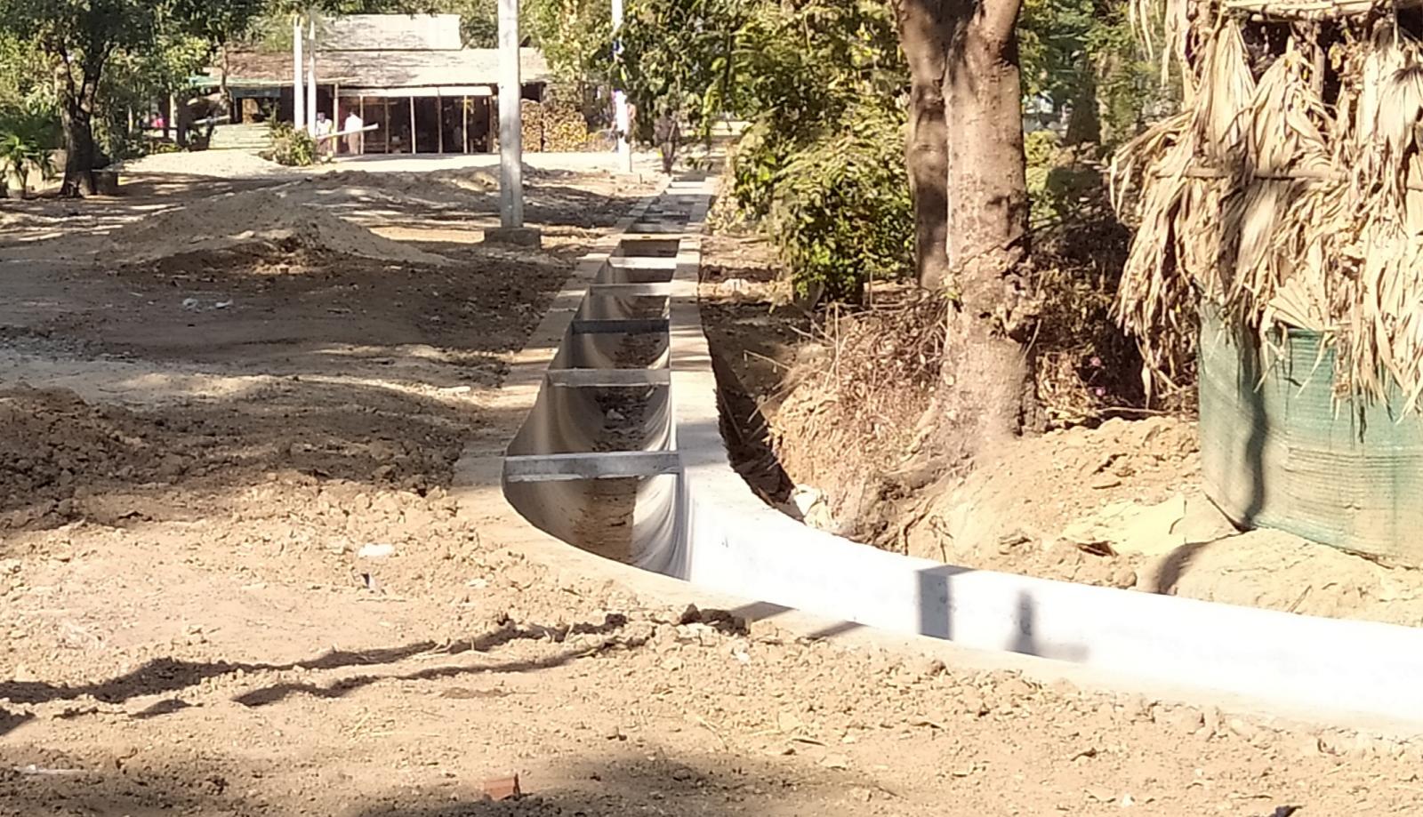 ထိုသို့မြို့သာယာလှပဖွံ့ဖြိုးတိုးတက်ရေး အတွက်၂၀၂၀-၂၀၂၁ ဘဏ္ဍာရေးနှစ်ခွင့်ပြု ရန်ပုံ ငွေဖြင့် မြို့သစ်မြို့ စျေးရပ်ကွက်ရှိ ဗိုလ်မင်းရောင်လမ်း အုတ်စီရေမြောင်းခင်းခြင်း လုပ်ငန်း ကို နိုဝင်ဘာလ ဒုတိယပတ်မှစ၍ ဆောင်ရွက်ခဲ့ပြီး ယခုအခါ ရာနှုန်းပြည့်ပြီးစီး ပြီဖြစ်ကြောင်းနှင့် သတ်မှတ်စံ ချိန်စံညွှန်း ပြည့်မီရေးအတွက်ကြီးကြပ်အင်ဂျင်နီယာ ဒေါ်မေသဇင် ကို (J.E)မှ အနီးကပ်ကြီးကြပ် ဆောင်ရွက်ခဲ့ ကြောင်း အရှည် (၂၄၃)ပေ၊ အကျယ်(၂.၅)ပေနှင့် ထုထည် အမြင့်(၂.၅)ပေဖြစ်ပြီး ခွင့်ပြုရန်ပုံငွေကျပ် (၆.၀၇၅)သန်း ဖြင့် ဆောင်ရွက်ခဲ့ကြောင်း မြို့သစ်မြို့စည်ပင်သာယာရေးအဖွဲ့မှ သိရသည်။