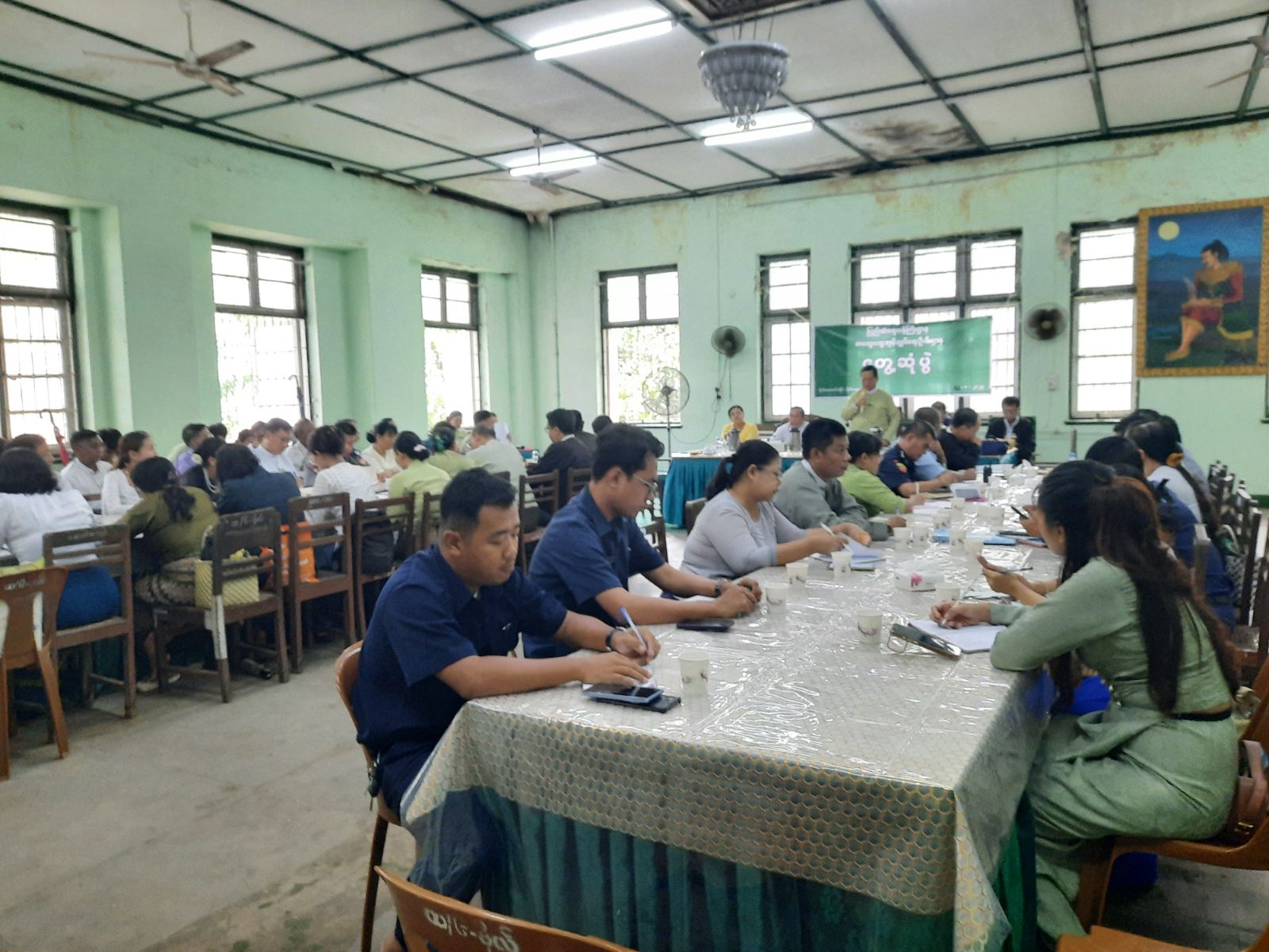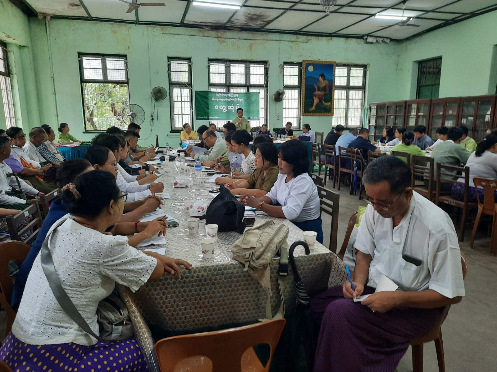 ဆက်လက်၍ ခရိုင်စီမံခန့်ခွဲရေးနှင့်အုပ်ချုပ်ရေးကော်မတီဝင်များမှ မိတ်ဆက်ခြင်း၊ ဆွေးနွေးခြင်း၊ ခရိုင်အဆင့်ဌာနဆိုင်ရာများ၊ ခရိုင်တာဝန်ခံများမှ မိမိတို့ဌာနအလိုက် လုပ်ငန်းဆောင်ရွက်မှုအခြေအနေများအား ဆွေးနွေးတင်ပြခြင်း၊ မြို့နယ်စီမံခန့်ခွဲရေးနှင့် အုပ်ချုပ်ရေးကော်မတီဥက္ကဋ္ဌဦးစိုးလှိုင်မောင်မှ မိမိတို့မြို့နယ်အတွင်း လုံခြုံရေး၊ တရားဥပဒေစိုးမိုးရေး၊ ဒေသဖွံ့ဖြိုးရေးလုပ်ငန်းများ ဆောင်ရွက်နေမှုအခြေအနေများ၊ မြို့နယ်အတွင်း ရွေးကောက်ပွဲအတွက် ပြင်ဆင်ဆောင်ရွက်ထားရှိမှုအခြေအနေများ၊ မြို့နယ်အတွင်း လုံခြုံရေးဆောင်ရွက်ထားရှိမှုများအား ဆွေးနွေးတင်ပြခဲ့ခြင်း၊ မြို့နယ်စီမံခန့်ခွဲရေးနှင့်အုပ်ချုပ်ရေးကော်မတီအဖွဲ့ဝင်များ၊ ဌာနဆိုင်ရာများနှင့် ရပ်ကွက်အုပ်ချုပ်ရေးမှူးများ၊ ရပ်ကျေးစာရေးများမှ မိမိတို့လုပ်ငန်းဆောင်ရွက်နေမှု အခြေအနေများကို အသီးသီးဆွေးနွေးတင်ပြကြပြီး ခရိုင်စီမံခန့်ခွဲရေးနှင့်အုပ်ချုပ်ရေးကော်မတီဥက္ကဋ္ဌမှ နိဂုံးချုပ်အမှာစကားပြောကြားကာ တွေ့ဆုံပွဲကို (၁၂း၃၀)နာရီအချိန်တွင် ရုပ်သိမ်းခဲ့ပါသည်။