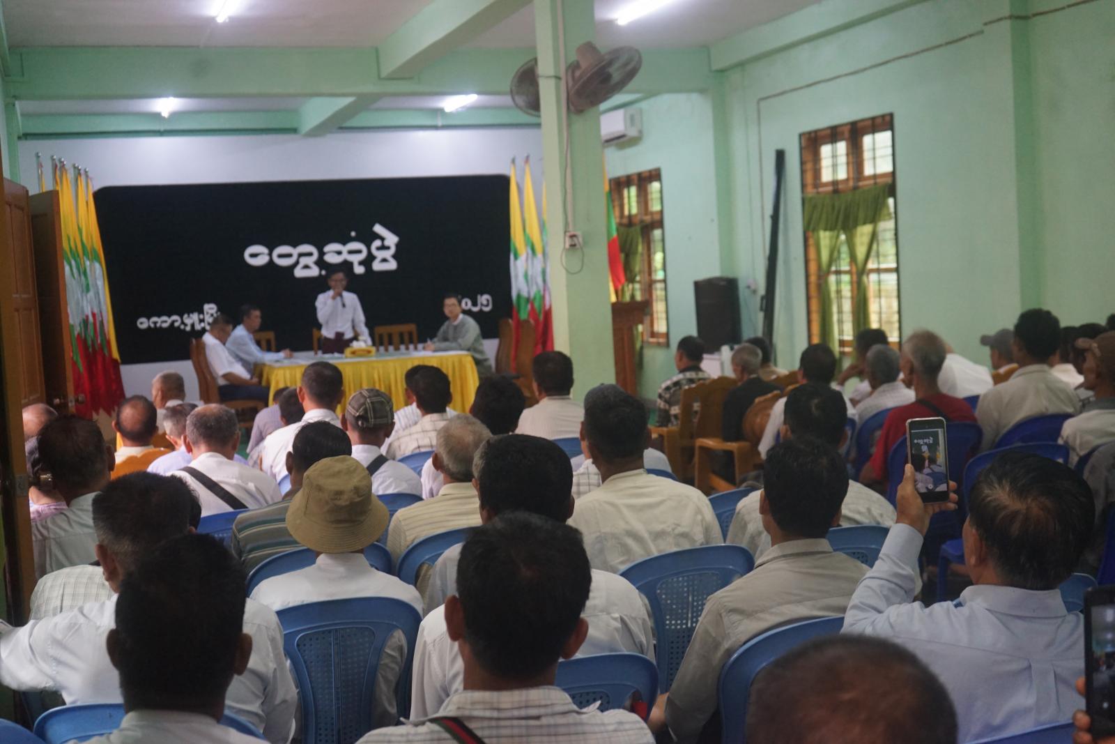 ဦးစွာ မြို့နယ်ရွေးကောက်ပွဲကော်မရှင်အဖွဲ့ခွဲဥက္ကဋ္ဌ ဦးအောင်ကျော်စိုးက မိတ်ဆက်ခြင်းနှင့် ရွေးကောက်ပွဲနှင့်သက်ဆိုင်သည့် ကိစ္စရပ်များဆွေးနွေးပြီး အဖွဲ့ဝင်များက မိတ်ဆက်စကားပြောကြားခဲ့သည်။ ဆက်လက်၍ မြို့နယ်ရွေးကော်ပွဲအရာရှိ ဦးကျော်ဇင်ထက်က တက်ရောက်လာသူများအား စက်တင်ဘာလ ၁ ရက်နေ့မှ ၃၀ ရက်အထိ ကျင်းပပြုလုပ်မည့် မဲပေးစက်များဖြင့် မဲဆန္ဒရှင်ပြည်သူများအား မဲပေးစက်ဆိုင်ရာ အသိပညာပေးခြင်းနှင့် လက်တွေ့စမ်းသပ်မဲပေးခြင်းအစီအစဉ် ဆောင်ရွက်ထားရှိမှုအခြေအနေများ၊ ရပ်ကွက်/ကျေးရွာကော်မရှင်အဖွဲ့ခွဲ ဥက္ကဋ္ဌနှင့် အဖွဲ့ဝင်များအား သက်ဆိုင်ရာလုပ်ငန်းတာဝန်များ ခွဲဝေချထားခြင်းနှင့်ပတ်သက်၍ အသေးစိတ်ရှင်းလင်းပြောကြားခဲ့သည်။