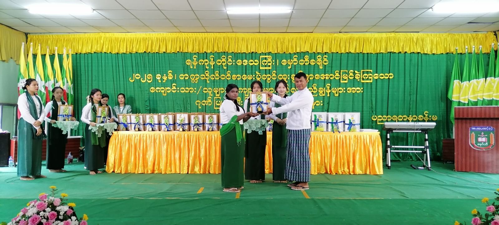 ရန်ကုန်တိုင်းဒေသကြီး၊ မှော်ဘီခရိုင် ၂၀၂၅ ခုနှစ်၊ တက္ကသိုလ်ဝင်စာမေးပွဲ၌ ထူးချွန်စွာအောင်မြင်ခဲ့သော ကျောင်းသား/ ကျောင်းသူများ၊ ကျောင်းများနှင့် လူရည်ချွန်များအား ဂုဏ်ပြုဆုချီးမြှင့်ခြင်းအခမ်းအနားကို ယနေ့နံနက် ၉ နာရီက အခြေခံပညာအထက်တန်းကျောင်း အ-ထ-က(၁)ရှိ ပညာရတနာခန်းမတွင် ကျင်းပသည်။