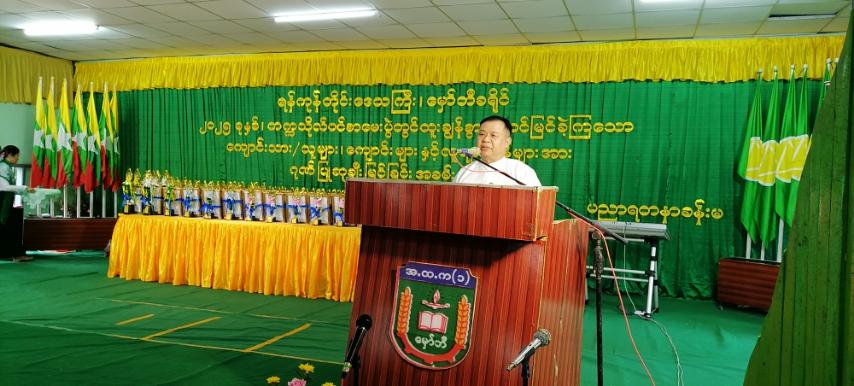 ဦးစွာ ထန်းတပင်ကျော်လင်းနိုင် ကိုယ်ပိုင်အထက်တန်းကျောင်း ကျောင်းသား/ ကျောင်းသူလေးများက ဘက်စုံပညာကို ရည်ဒို့လှမ်းချီသီချင်းဖြင့် အခမ်းအနားအား သီဆိုဖွင့်လှစ်ပြီးနောက် မှော်ဘီခရိုင်စီမံခန့်ခွဲရေးနှင့် အုပ်ချုပ်ရေးကော်မတီဥက္ကဋ္ဌ ဦးစိုးနိုင်က အဖွင့်အမှာစကားပြောကြားရာတွင် ကျောင်းသား/ ကျောင်းသူများအနေဖြင့် နိုင်ငံတော်စဉ်ဆက်မပြတ်ဖွံ့ဖြိုးတိုးတက်ရေးအတွက် အမျိုးသားပညာရေးကဏ္ဍ၊ ကျန်းမာရေးကဏ္ဍတို့ကို အလေးထားမြှင့်တင်ရေးလမ်းညွှန်ချက်နှင့်အညီ အသိပညာ၊ အတတ်ပညာ၊ ဗဟုသုတနှင့် ပြည့်စုံသော လူတော်လူကောင်းများ ပေါ်ထွန်းရေး ပညာရေးကဏ္ဍမှ မွေးထုတ်ပေးရန်လိုအပ်ကြောင်း အမှာစကားပြောကြားပြီး ခရိုင်ပညာရေးမှူး ဦးအေးလွင်က ဆုချီးမြှင့်ခြင်း၏ ရည်ရွယ်ချက်များအား ရှင်းလင်းပြောကြားခဲ့သည်။