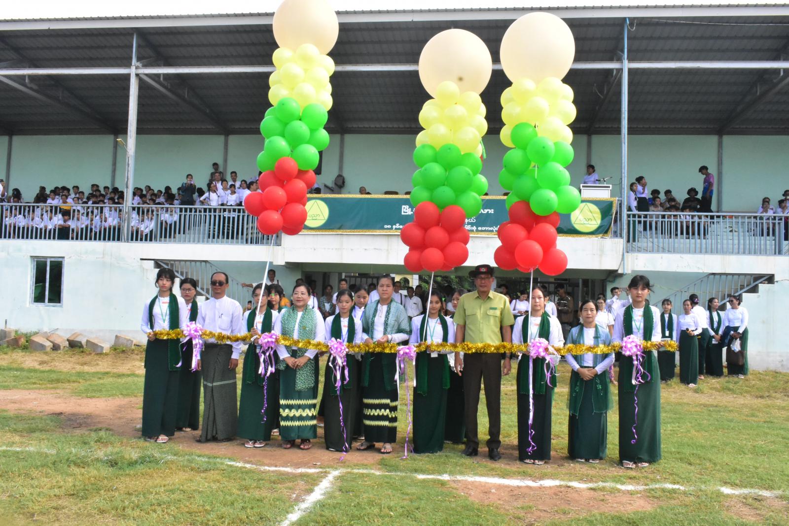 ရှေးဦးစွာ မဟာအောင်မြေခရိုင်၊ ပညာရေးမှူးဆရာမကြီး ဒေါက်တာသက်လှစုမှ အဖွင့်အမှာစကားပြောကြားခဲ့ပြီး ပြိုင်ပွဲဝင် အားကစားအသင်းများမှ ချီတက်ကာအလေးပြုခဲ့ကြသည်။ ထို့နောက် အမှတ် (၅) အခြေခံပညာ အထက်တန်းကျောင်းရှိ ကျောင်းဘင်ခရာအဖွဲ့မောင်မယ်များမှ လူငယ်စွမ်းရည်ဖြင့် တီးခတ်ဖျော်ဖြေတင်ဆက်ခဲ့ကြသည်။