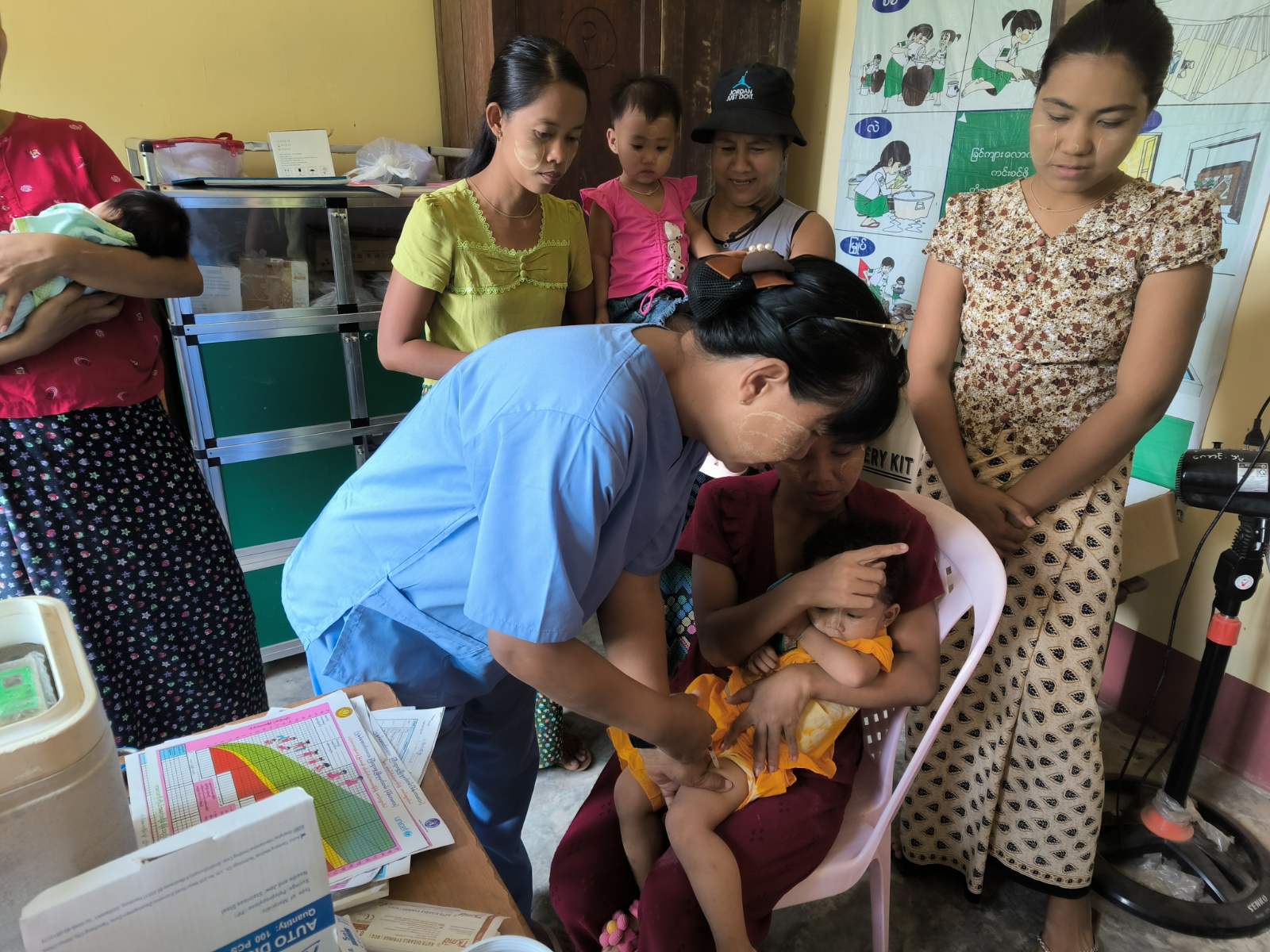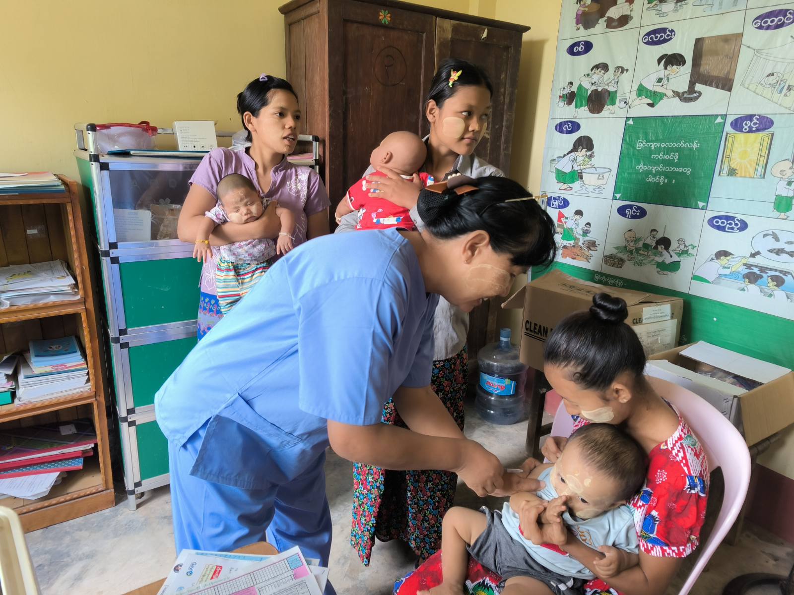 ရန်ကုန်တိုင်းဒေသကြီး၊ သန်လျင်ခရိုင်၊ တံတားမြို့၌ အသက်(၂)နှစ်အောက်ကလေးများနှင့် ကိုယ်ဝန်ဆောင်မိခင်များအား ပုံမှန်ကာကွယ်ဆေးထိုးနှံတိုက်ကျွေးခြင်းကို ယနေ့နံနက် ၈ နာရီအချိန်က ကျေးလက်ကျန်းမာရေးဌာနတွင် ထိုးနှံပေးလျက်ရှိသည်။