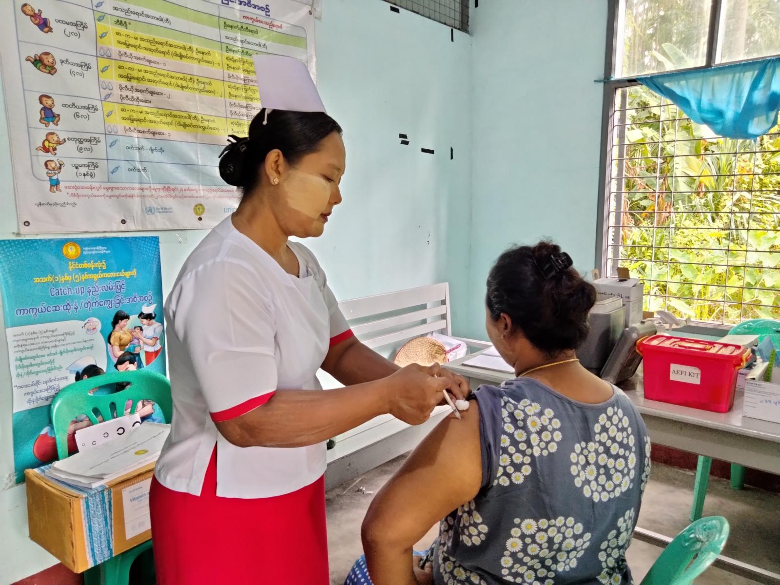 ပုံမှန်ကာကွယ်ဆေးထိုးနှံတိုက်ကျွေးခြင်းလုပ်ငန်းများဆောင်ရွက်ရာတွင် လာရောက်ထိုးနှံသည့် မိခင်နှင့်အသက်(၂)နှစ်အောက်ကလေးများအား ကျန်းမာရေးဝန်ထမ်းများမှ ရပ် ကွက်/ကျေးရွာများရှိ ကိုယ်ဝန်ဆောင်မိခင်နှင့် အသက်(၂)နှစ်အောက်ကလေးများအား အဆုတ်ရောဂါကာကွယ်ဆေး၊ ငါးမျိုးစပ်၊ ဆုံဆို့၊ ကြက်ညာ၊ အသည်းရောင်အသားဝါ၊ ဦး နှောက်အမြှေးရောင်၊ နမိုးနီးယားကာကွယ်ဆေး၊ ပိုလီယိုသောက်ဆေးနှင့်ထိုးဆေး၊ မေးခိုင်ရောဂါကာကွယ်ဆေး၊ ဝမ်းရောဂါကာကွယ်ဆေးထိုးနှံတိုက်ကျွေးခြင်းများကို အလှည့်ကျစနစ်ဖြင့် ပုံမှန်ကာကွယ်ဆေးထိုးနှံပေးလျက်ရှိသည်။