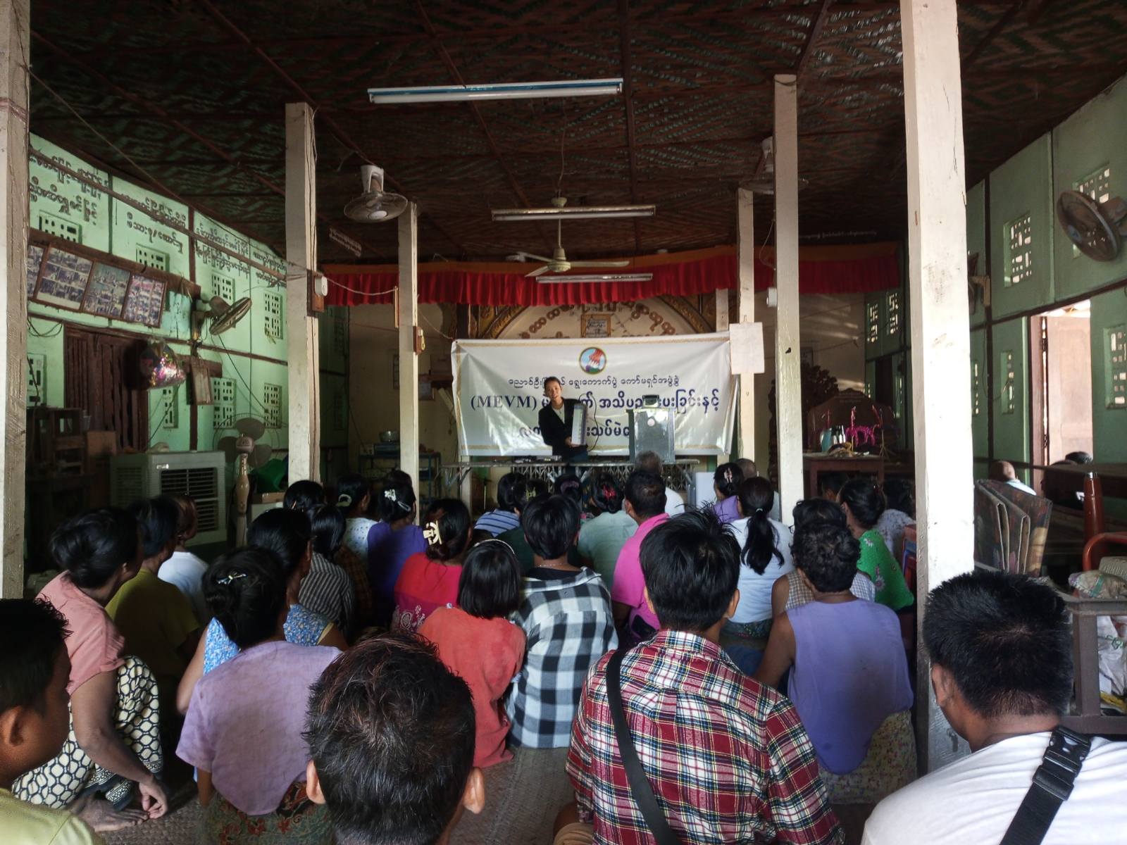 မြန်မာအီလက်ထရောနစ်မဲပေးစက်နှင့်ပတ်သက်၍ မြို့နယ်ရွေးကောက်ပွဲအရာရှိက ဒေါ်ယွန်းယွန်းထိုက်က မဲပေးစက်ဆိုင်ရာလုပ်ငန်းစဉ်များကို ရှင်လင်းပြောကြားသည်။ ထို့နောက် ရပ်ကွက်သူ/ ရပ်ကွက်သားများက ကိုယ်တိုင်ကိုယ်ကျ စမ်းသပ်မဲပေးကြပြီး၊ ရွေးကောက်ပွဲကော်မရှင်အရာရှိက မဲပေးစက်မှ မဲလက်မှတ်စစ်ဆေးခြင်း၊ ကိုယ်စားလှယ်လောင်းတစ်ဦးချင်းစီ၏ မဲရလာဒ်ထုတ်ပြန်ခြင်းများကို လက်တွေ့ဆောင်ရွက်ပြသခဲ့ကြောင်း သိရသည်။