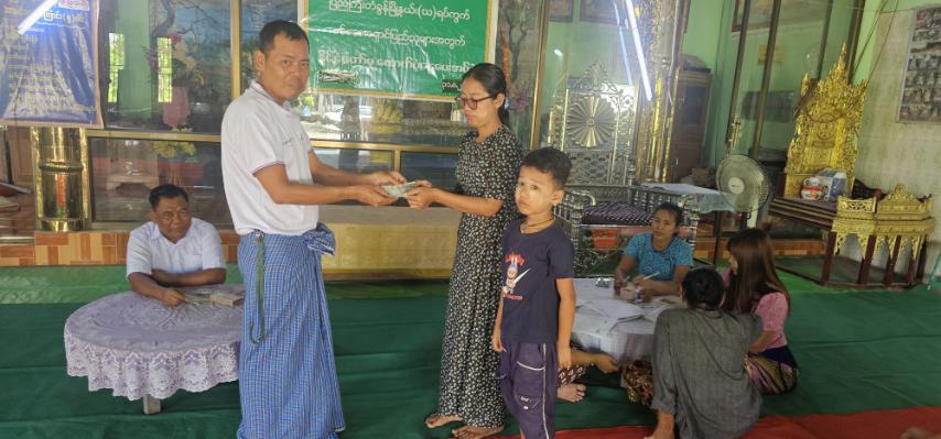 မန္တလေးတိုင်းဒေသကြီး၊ ပြည်ကြီးတံခွန်မြို့နယ် (ဃ) ရပ်ကွက်တွင် ယာယီနေရပ်စွန့်ခွာသူများအား ယမန်နေ့နံနက် (၁၀) နာရီက မြသိန်းတန်ဓမ္မာရုံ၌ နိုင်ငံတော်မှ ထောက်ပံ့ငွေများ ပေးအပ်ခဲ့သည်။