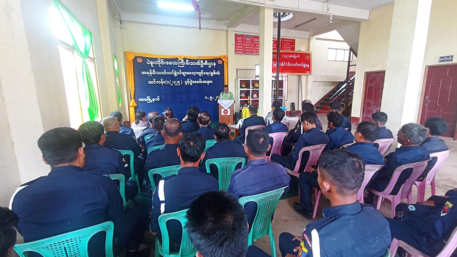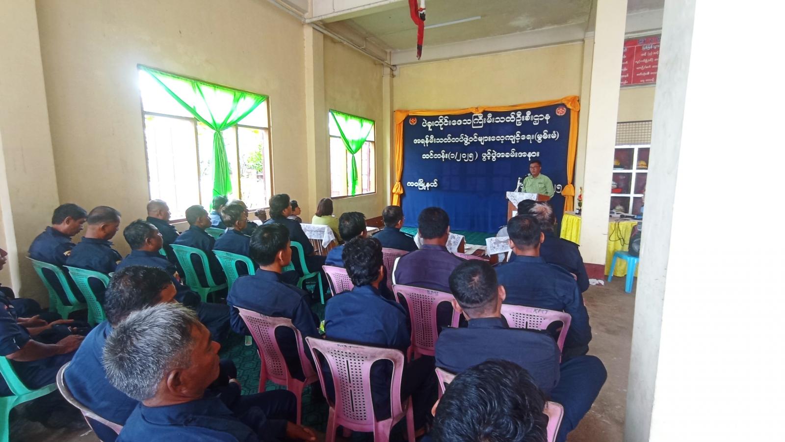 ထို့နောက် တာဝန်ရှိသူများက သင်တန်းသားများအတွက် အရန်မီးသတ်တူညီဝတ်စုံများကိုပေးအပ်ခဲ့ပြီး အခမ်းအနားသို့ မြို့နယ်စီမံခန့်ခွဲရေးနှင့်အုပ်ချုပ်ရေးကော် မတီဥက္ကဋ္ဌဦးရဲထွန်းနှင့် အဖွဲ့ဝင်များ၊ ဌာနဆိုင်ရာများ၊ မြို့နယ်အဆင့်သင်တန်းကြီးကြပ်ကွပ်ကဲမှုအဖွဲ့ဝင်များ၊ မြို့မိမြို့ဖများ၊ သင်တန်းသားများတက်ရောက်ခဲ့ကြပြီး အဆိုပါ အရန်မီးသတ်တပ်ဖွဲ့ဝင်များ လေ့ကျင့်ရေး(မွမ်းမံ)သင်တန်းကို သင်တန်းသား(၅၀)ဖြင့် စက်တင်ဘာလ(၁)ရက်‌နေ့မှ (၂၉)ရက်နေ့အထိ(၂၉)ရက်ကြာဖွင့်လှစ်သွားမည်ဖြစ်ကြောင်း သိရသည်။
