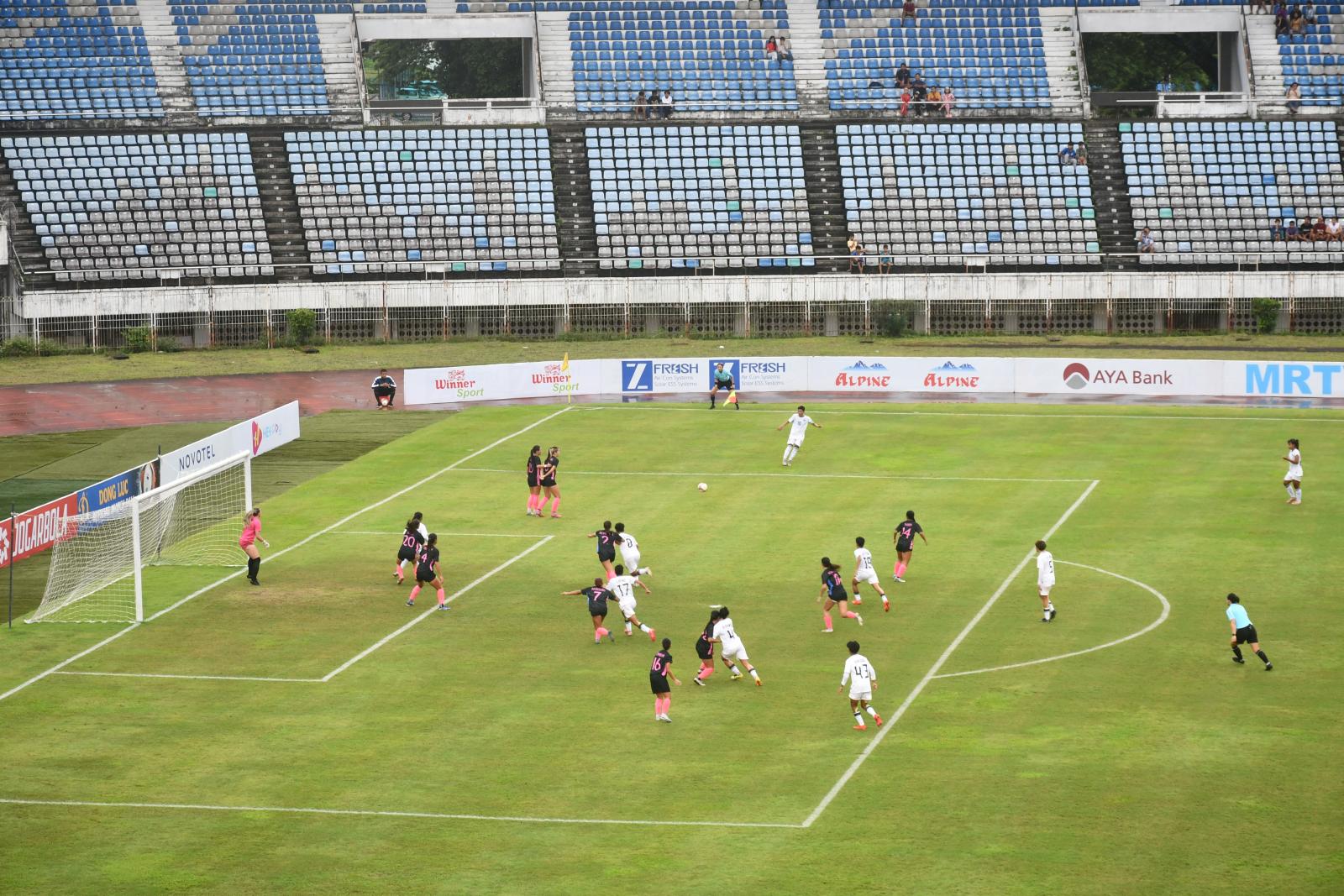 AFC Womens Championship League (AWCL) 2025/2026 ပြိုင်ပွဲ၏ Preliminary Stage ပြိုင်ပွဲကို ယမန်နေ့ညနေပိုင်းက ရန်ကုန်မြို့ ဝေဇယန္တာလမ်းရှိ လူငယ်အားကစားလေ့ကျင့်ရေးစခန်း သုဝဏ္ဏဘောလုံးကွင်းတွင်ကျင်းပပြုလုပ်ရာ ရန်ကုန်တိုင်းဒေသကြီးဝန်ကြီးချုပ်ဦးစိုးသိန်း၊ အားကစားနှင့်လူငယ်ရေးရာဝန်ကြီးဌာန ဒုတိယဝန်ကြီးဦးဇင်မင်းထက်၊ ရန်ကုန်တိုင်းဒေသကြီးအစိုးရအဖွဲ့ဝန်ကြီးများ၊ အားကစားနှင့်ကာယပညာဦးစီးဌာန ညွှန်ကြားရေးမှူးချုပ်နှင့် တာ ဝန်ရှိပုဂ္ဂိုလ်များ၊ မြန်မာနိုင်ငံဘောလုံးအဖွဲ့ချုပ်ဥက္ကဋ္ဌဦးဇော်ဇော်၊ ဌာနဆိုင်ရာများမှတာဝန်ရှိပုဂ္ဂိုလ်များ၊ မြန်မာနိုင်ငံဘောလုံးအဖွဲ့ချုပ်မှတာဝန်ရှိသူများ၊ ဖိတ် ကြားထားသောဧည့်သည်တော်များ တက်ရောက်ခဲ့ကြသည်။
