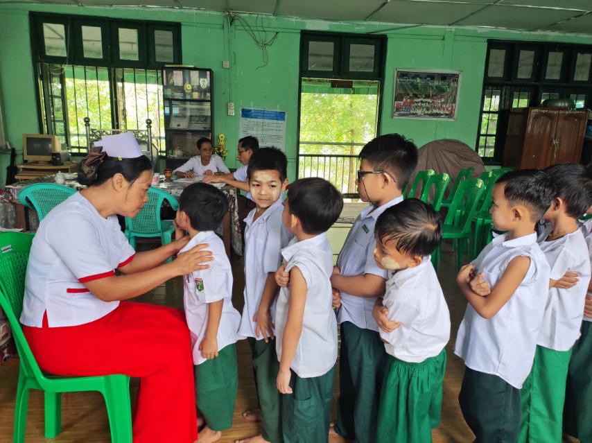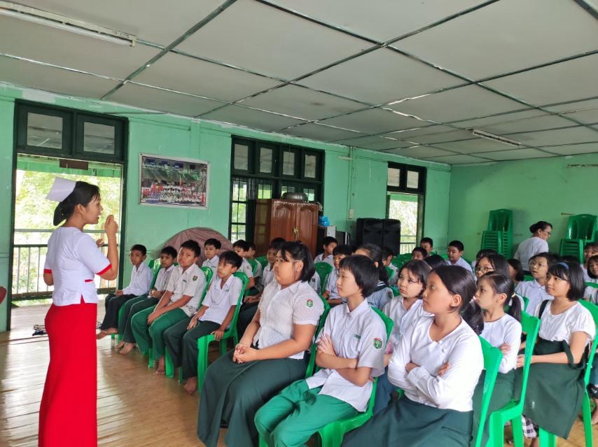 ထိုသို့ဆောင်ရွက်ရာတွင် မြို့နယ်ပြည်သူ့ကျန်းမာရေးဦးစီးဌာနမှူး ဒေါက်တာဝေဆင့်ကျော်နှင့် ကျန်းမာရေးဝန်ထမ်းများသည် အ.မ.က(၂၀)မူလွန်ကျောင်းနှင့် အ.လ.က(၅)ကျောင်းရှိကျောင်းသား/သူများအား သွားကျန်းမာရေးနှင့်ကျန်းမာရေးစစ်ဆေးပေးခြင်း၊ အသိပညာပေးဖြစ်သောသန့်လေးသန့်ရန်သူ၊ အစာစားပါကဗျာများအားသင်ကြားပေးခြင်း၊ သွေးလွန်တုပ်ကွေးရောဂါအကြောင်းဟောကြားခြင်း၊ ကိုယ်လက်လှုပ်ရှားအားကစားအကြောင်းနှင့် ပျိုရွယ်သူကျန်းမာရေးအ ကြောင်းပညာပေးဟောပြောခဲ့ပြီး ပိုးလောက်လန်းစစ်ဆေးခြင်း၊ ပဏမမျက်စိကျန်းမာရေးစစ်ဆေးပေးခြင်းများဆောင်ရွက်ခဲ့ကြောင်းသိရသည်။