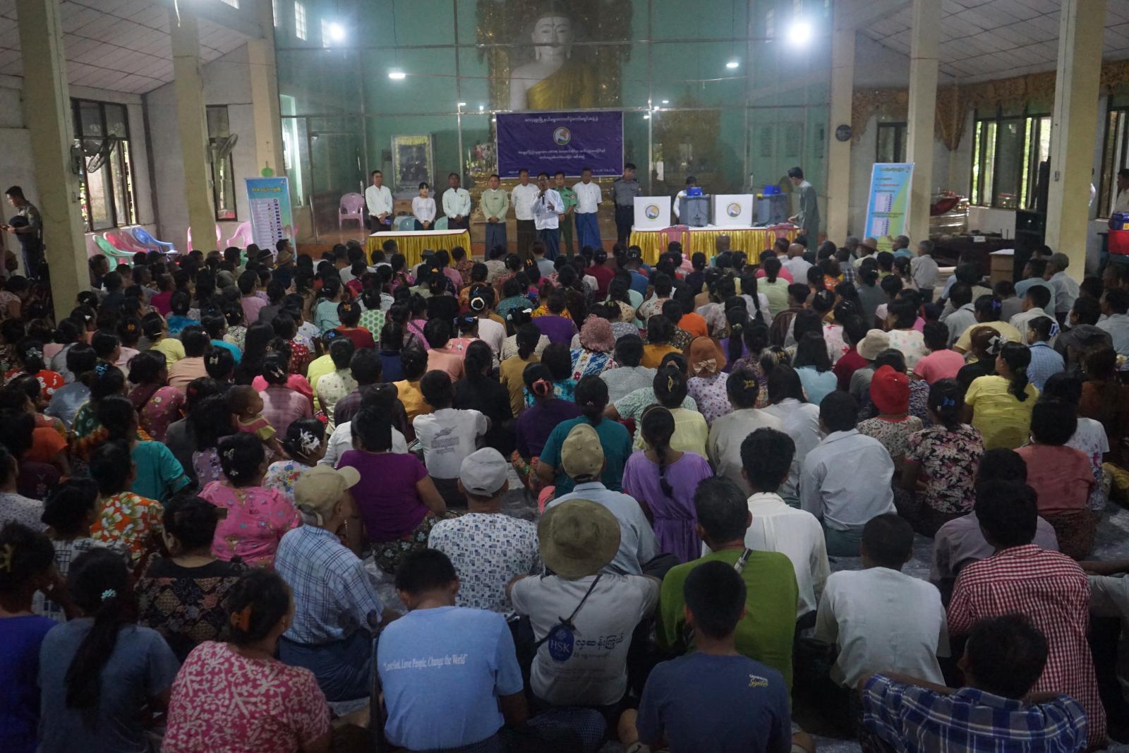 ဦးစွာ မြို့နယ်စီမံခန့်ခွဲရေးနှင့်အုပ်ချုပ်ရေးကော်မတီဥက္ကဋ္ဌ ဦးမျိုးမင်းက အမှာစကားပြောကြားပြီး မြို့နယ်ရွေးကော်ပွဲကော်မရှင်အဖွဲ့ခွဲဥက္ကဋ္ဌ ဦးအောင်ကျော်စိုးက ရွေးကောက်ပွဲကျင်းပရေးဆိုင်ရာများကို ရှင်းလင်းပြောကြားကာ မြို့နယ်ရွေးကောက်ပွဲကော်မရှင်အဖွဲ့ခွဲ အတွင်းရေးမှူး ဦးကျော်ဇင်ထက်က မဲဆန္ဒရှင်များအား မြန်မာအီလက်ထရောနစ်မဲပေးစက်အသုံးပြု၍ စမ်းသပ်ဆန္ဒမဲပေးခြင်းလုပ်ငန်းများနှင့်စပ်လျဉ်း၍ အသိပညာပေးရှင်းလင်းပြောကြားခဲ့သည်။