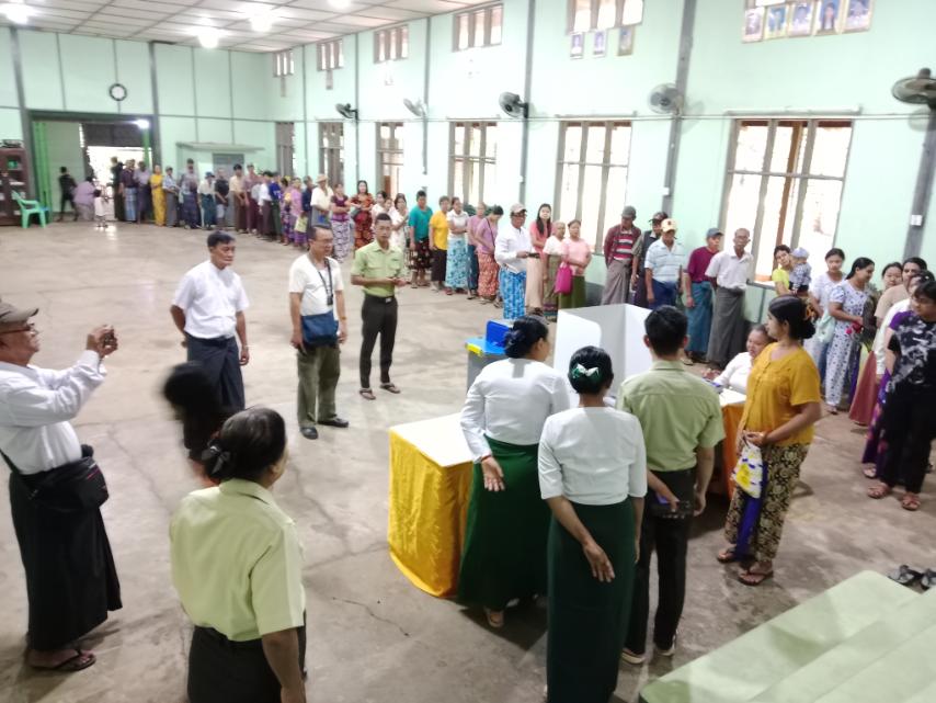 ရန်ကုန်တိုင်းဒေသကြီး၊ လှည်းကူးခရိုင်၊ လှည်းကူးမြို့နယ်တွင် မဲဆန္ဒရှင်ပြည်သူများအား မြို့နယ်ရွေးကောက်ပွဲကော်မရှင်အဖွဲ့ခွဲမှ မြန်မာအီလက်ထရောနစ်မဲပေးစက် (MEVM) နှင့်ပတ်သက်၍ သိရှိစေရန် အသိပညာပေးခြင်းနှင့် လက်တွေ့စမ်းသပ်မဲပေးခြင်းများကို ယနေ့နံနက်ပိုင်းက အခြေခံပညာအထက်တန်းကျောင်း(လှည်းကူး) အောင်ဆန်းခန်းမ၌ ဆောင်ရွက်ခဲ့ကြောင်း သိရသည်။