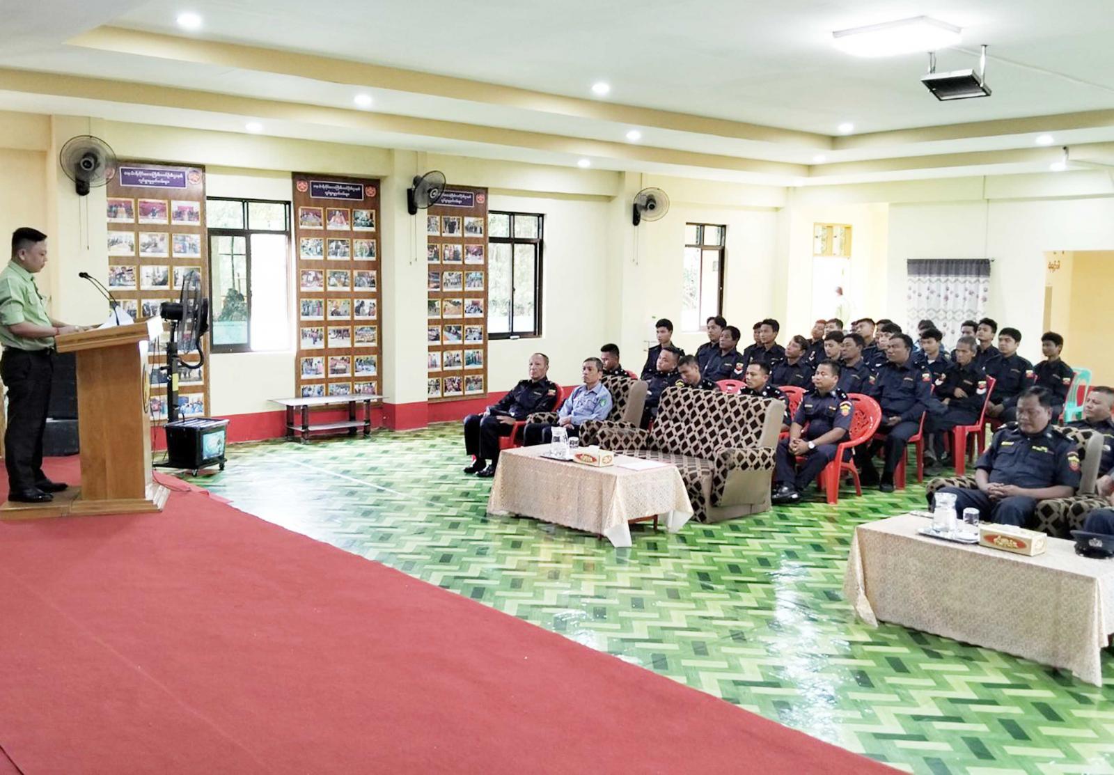 အခမ်းအနားတွင် မြို့နယ်စီမံခန့်ခွဲရေးနှင့်အုပ်ချုပ်ရေးကော်မတီဥက္က ကိုယ်စား ဒုတိယမြို့နယ်အုပ်ချုပ်ရေးမှူး ဦးစောအောင်မွန်က မီးသတ်တပ်ဖွဲ့၏ ရည်ရွယ်ချက်အောင်မြင်ရန်အတွက် ချမှတ်ပေးထားသော ရည်မှန်းချက်တာဝန် (၄) ရပ်ဖြစ်သည့် မီးဘေးလုံခြုံရေး၊ သဘာဝဘေး အန္တရာယ်ကာကွယ်ရေ၊ ရှာဖွေကယ်ဆယ်ရေး၊ ပြည်သူ့အကျိုးပြု ဆောင်ရွက်ရေးလုပ်ငန်းများကို ဦးစားပေးဆောင်ရွက်ရမည်ဖြစ်ကြောင်း၊ မီးသတ်တပ်ဖွဲ့ဝင်များအနေဖြင့် မီးငြှိမ်းသတ်ရေးနှင့် ရှာဖွေကယ်ဆယ်ရေးတစ်ပြိုင်တည်းဆောင်ရွက်ရသည့်အတွက် မီးငြှိမ်းသတ်ရေးလုပ်ငန်းအပြင် ရှာဖွေကယ်ဆယ်ရေးလုပ်ငန်းများကိုလည်း ကျွမ်းကျင်တက်မြောက်စေရန် ယခုကဲ့သို့သင်တန်းများ ဖွင့်လှစ်သင်ကြားပေးခြင်းဖြစ်ကြောင်းပြောကြားသည်။