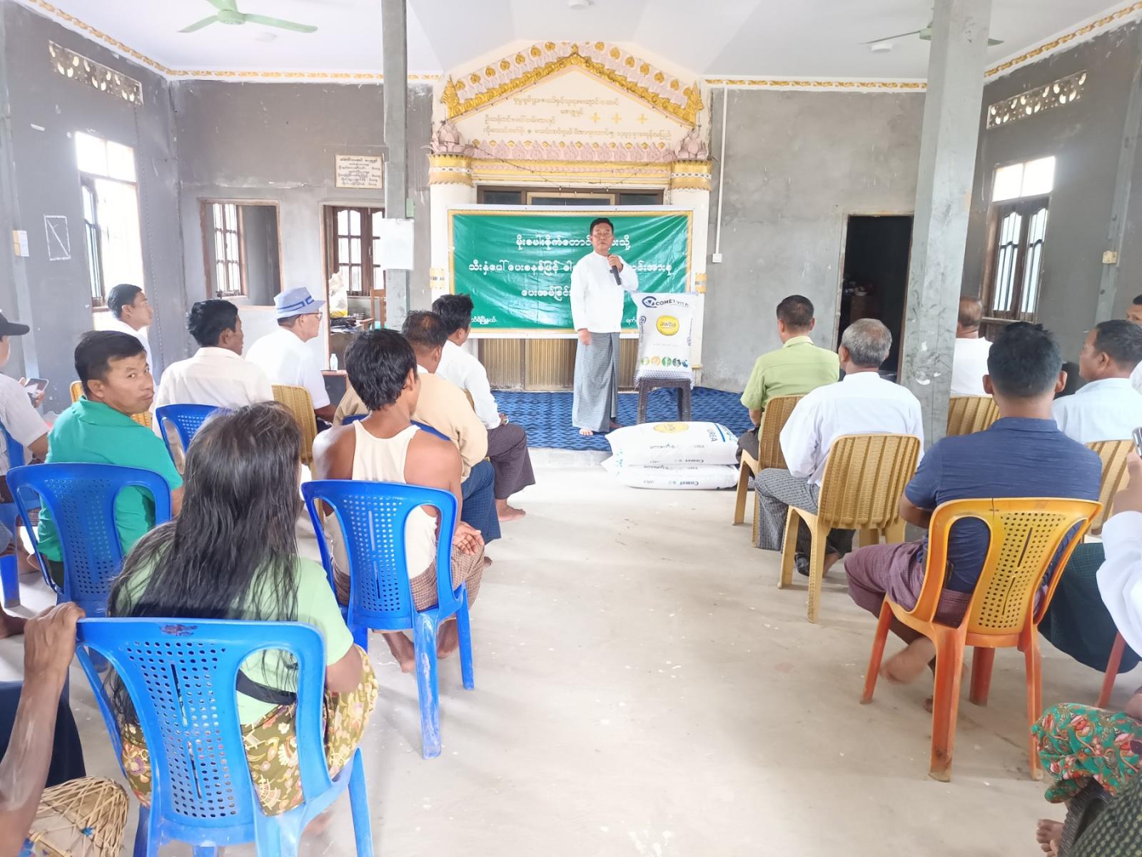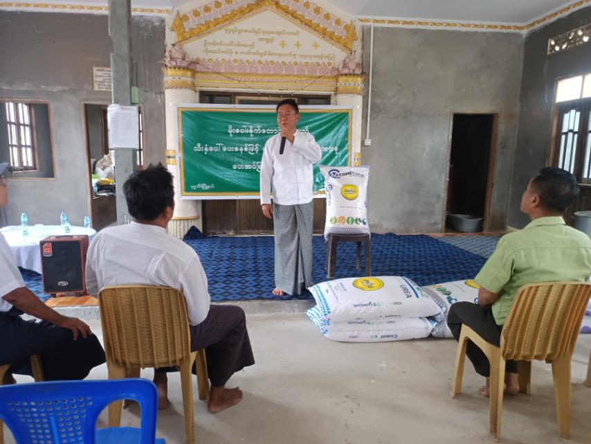 ရှေးဦးစွာ နေပြည်တော်ကောင်စီဝင် ဦးမင်းဦးက အမှာစကားပြောကြားရာတွင် တောင်သူများ၏ စိုက်ပျိုးရေးလုပ်ငန်းတွင် ပန်းတိုင်အထွက်နှုန်းပြည့်မီပြီး ပြည်တွင်းကုန်ထုတ်စွမ်းအား တိုးတက်စေရေး၊ ကြိုးပမ်းဆောင်ရွက်ကြရန်နှင့် တောင်သူများအနေဖြင့် ယခုပေးအပ်သည့် ဓာတ်မြေဩဇာများကို စိုက်ပျိုးသီးနှံများအတွက် အမှန်တကယ် စနစ်တကျထိထိရောက်ရောက် အသုံးပြုကြစေလိုသဖြင့် ယခုလိုသက်သာသော ဈေးနှုန်းဖြင့် တိုက်ရိုက်ဖြန့်ဖြူး ရောင်းချပေးခြင်းဖြစ်ကြောင်း ပြောကြားခဲ့ပါသည်။