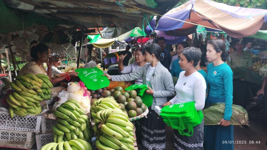 မန္တလေးတိုင်းဒေသကြီး၊ ကျောက်ဆည်ခရိုင်၊ စဉ့်ကိုင်မြို့နယ် မြို့နယ်ဈေးအတွင်း၌ ကျောက်ဆည်ခရိုင် ပတ်ဝန်းကျင်ထိန်းသိမ်းရေးဦးစီးဌာနမှ ဦးဆောင်၍ အပတ်စဉ်တနင်္လာနေ့တိုင်း ပလတ်စတစ်/ကြွပ်ကြွပ်အိတ်မသုံးစွဲရနေ့ (Monday Stop) လှုပ်ရှားမှုအဖြစ် အင်ဖက်များဖြန့်ဝေခြင်း၊ Recycle Bag များဖြန့်ဝေခြင်းနှင့် အသိပညာပေးလက်ကမ်းစာစောင်များ ဖြန့်ဝေခြင်းတို့ကို စက်တင်ဘာ ၁ ရက်နေ့ နံနက်ပိုင်းက ဆောင်ရွက်ခဲ့သည်။