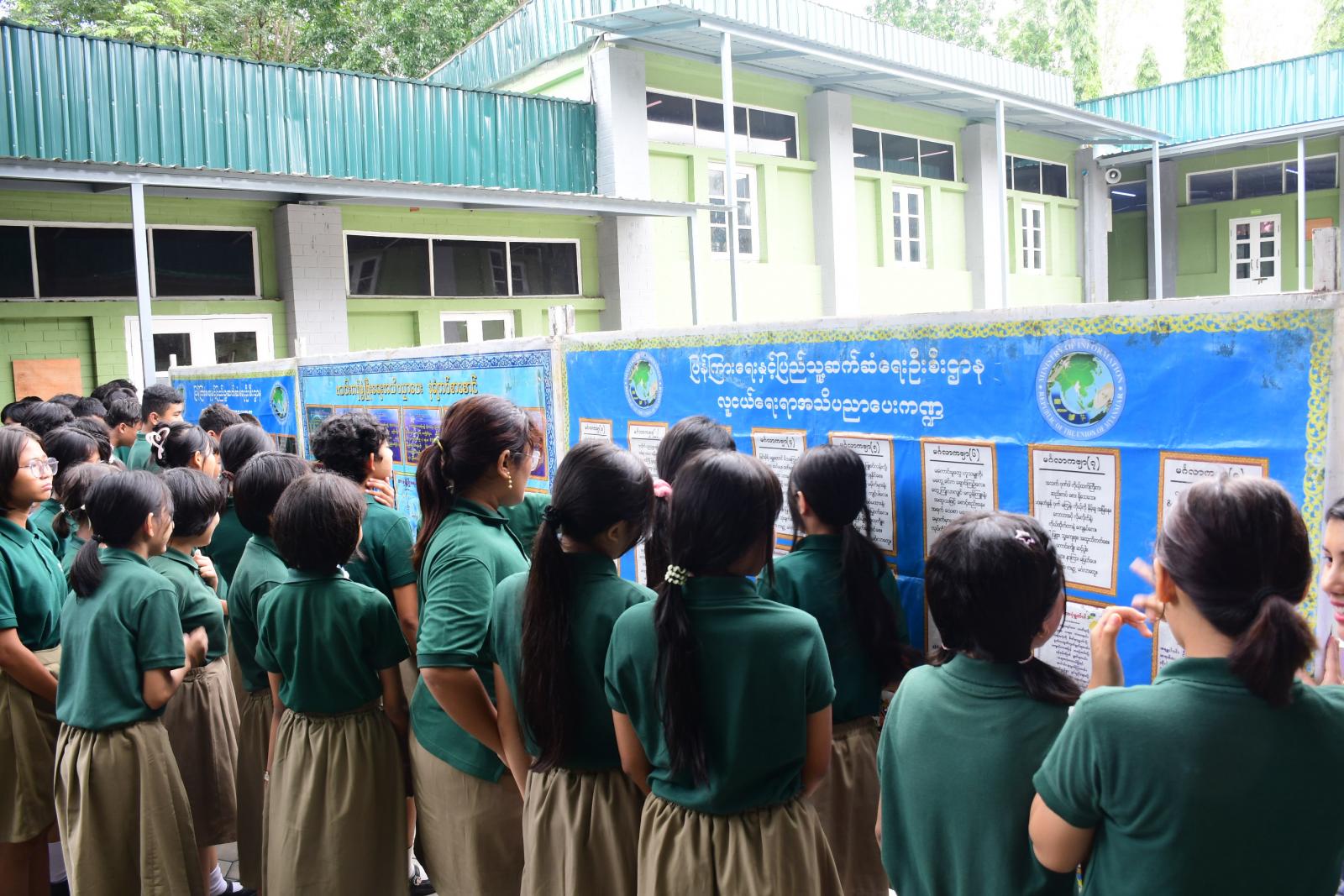 အခမ်းအနားအပြီးတွင် ဇမ္ဗူသီရိမြို့နယ် ပြန်ကြားရေးနှင့်ပြည်သူ့ဆက်ဆံရေးဦးစီးဌာနမှ ခင်းကျင်းပြသထားသည့် နံရံကပ်စာစောင်များနှင့် သုတ၊ ရသ စာအုပ်စာစောင်များကို ဆရာ၊ ဆရာမများနှင့် ကျောင်းသား၊ ကျောင်းသူများက စိတ်ပါဝင်စားစွာ လေ့လာကြည့်ရှုခဲ့ကြကြောင်း သိရသည်။