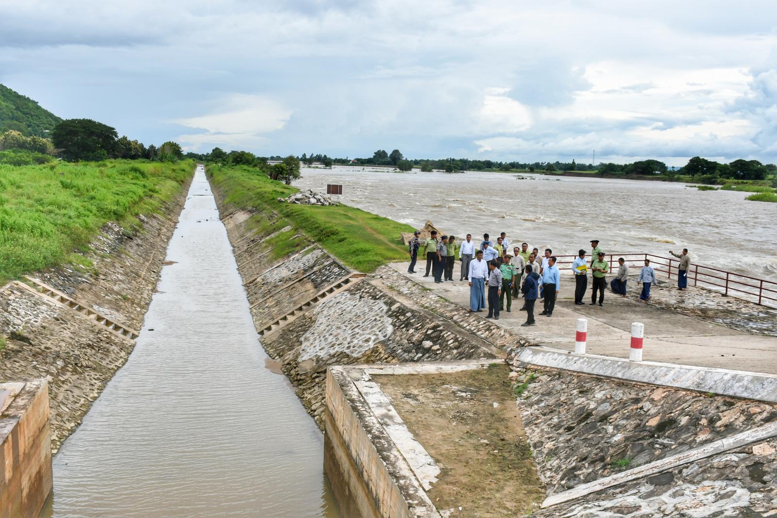 ဆက်လက်၍ နေပြည်တော်ကောင်စီဥက္ကဋ္ဌ ဦးသန်းထွန်းဦးသည် ပေါင်းလောင်းရေလွှဲဆည် (အဝေရာ) သို့သွားရောက်ပြီး ဆည်အတွင်း ရေဝင်ရောက်မှုအခြေအနေများ၊ သဲထုတ်ရေတံခါးနှင့် ပင်မရေကျော်ပေါက်များမှ ရေထုတ်လွှတ်မှုအခြေအနေများကို လှည့်လည်ကြည့်ရှု စစ်ဆေးခဲ့ကြောင်း သိရသည်။