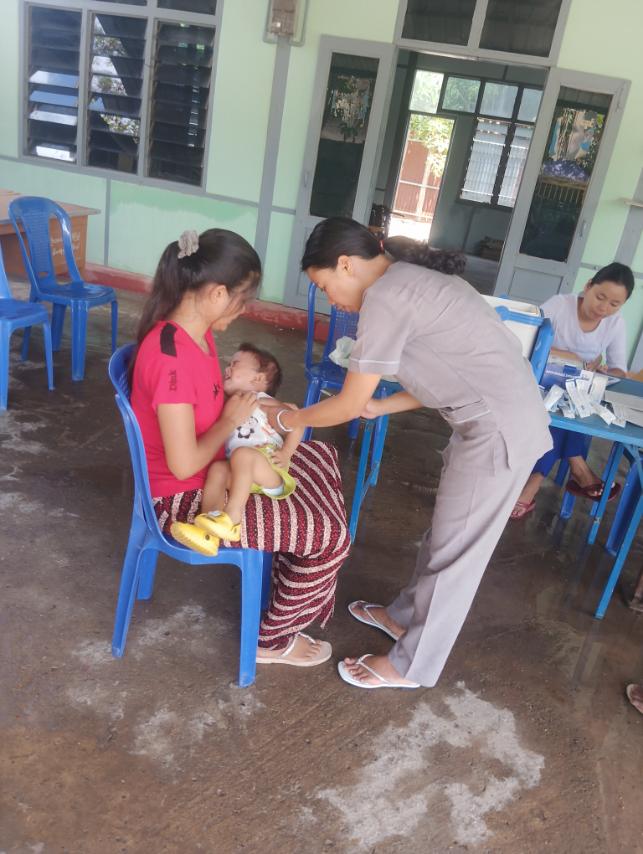 ကာကွယ်ဆေးထိုးနှံခြင်းလုပ်ငန်းများကို ခရိုင်ပြည်သူ့ဆေးရုံကြီးနှင့် ရပ်ကွက်၊ ကျေးရွာများတွင် ဆေးထိုးစုရပ်များခွဲပြီး အပတ်စဉ်နေ့ရက်များ သတ်မှတ်၍ ပုံမှန်ကာကွယ်ဆေးထိုးခြင်း၊ ဆေးတိုက်ခြင်းများ ဆောင်ရွက်ပေးလျက်ရှိပြီး ကာကွယ်ဆေးများကို သတ်မှတ်ထားသောအကြိမ်နှင့် သတ်မှတ်ထားသော အသက်အရွယ်တွင် ဆေးထိုး၊ ဆေးတိုက်ပေးနိုင်မှသာလျှင် ကလေးငယ်များအတွက် အဆုတ်ရောင်ကာကွယ်ဆေး၊ ငါးမျိုးစပ်၊ ဆုံဆို့နာရောဂါ၊ ကြက်ညှာချောင်းဆိုးရောဂါ၊ မေးခိုင်ရောဂါ၊ အသည်းရောင်အသားဝါ (ဘီ) ရောဂါ၊ ဦးနှောက်အမြှေးရောင်ရောဂါ၊ ပြင်းထန်အဆုတ်ရောင်ရောဂါ၊ ပိုလီယိုအကြောသေရောဂါ၊ ပြင်းထန်ဝမ်းပျက်ဝမ်းလျှောရောဂါ၊ ဂျပန်ဦးနှောက်ရောင်ရောဂါ၊ ဝက်သက်ရောဂါနှင့် ဂျိုက်သိုးရောဂါတို့မှ ကာကွယ်ပေးနိုင်မည်ဖြစ်ပြီး ကျန်းမာရေးဝန်ထမ်း ဆရာ/ ဆရာမများက အဖွဲ့များခွဲ၍ မြေပြင်ကွင်းဆင်းကာ ရပ်ကွက်/ ကျေးရွာများရှိ စုရပ်အသီးသီးတွင် ကာကွယ်ဆေးထိုးနှံခြင်း၊ တိုက်ကျွေးခြင်းများကို ဆောင်ရွက်ပေးလျက်ရှိကြောင်း သိရသည်။