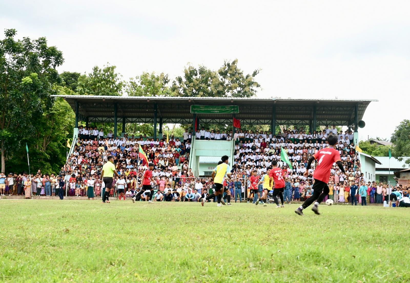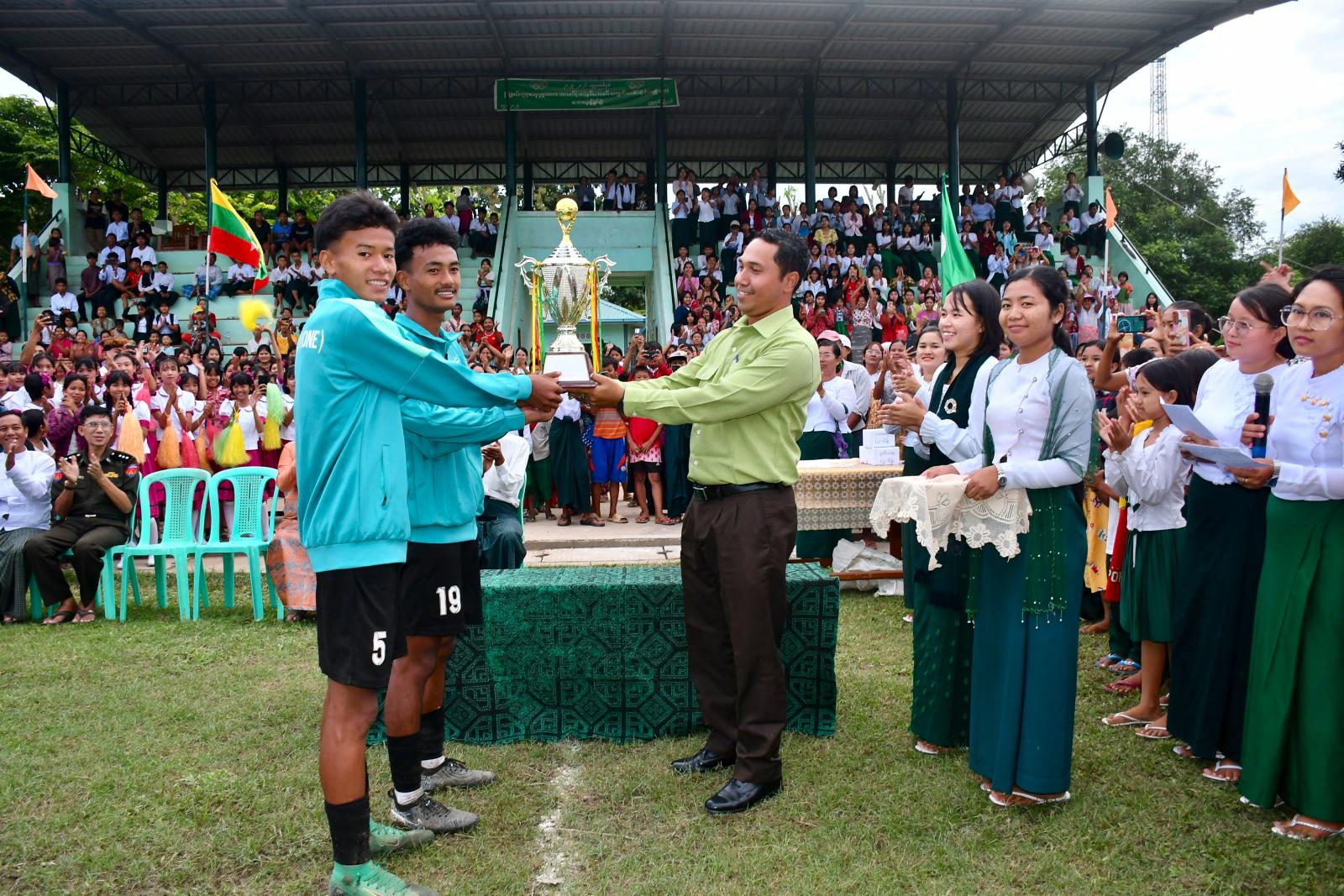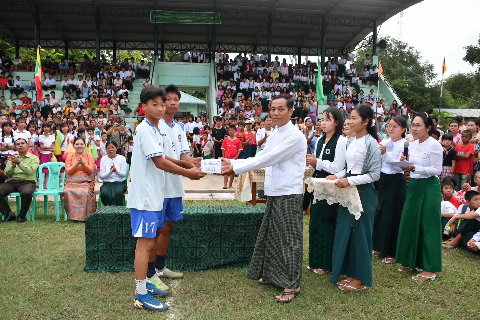 ဦးစွာ ဘောလုံးပြိုင်ပွဲ ဗိုလ်လုပွဲနှင့် ဆုပေးပွဲအခမ်းအနားတွင် မြို့နယ်စီမံခန့်ခွဲရေးနှင့် အုပ်ချုပ်ရေးကော်မတီဥက္ကဋ္ဌ ဦးရဲမြတ်သိန်းက အဖွင့်အမှာစကားပြောကြားပြီး မြို့နယ်ပညာရေးမှူး ဒေါ်အုန်းဆန်းက အားကစားသမားလူငယ် လူရွယ်များ ပေါ်ထွန်းလာစေရေးအတွက် ရည်ရွယ်၍ ဘောလုံးပြိုင်ပွဲ ကျင်းပဆောင်ရွက်ရခြင်းဖြစ်ကြောင်း ပြောကြားသည်။
