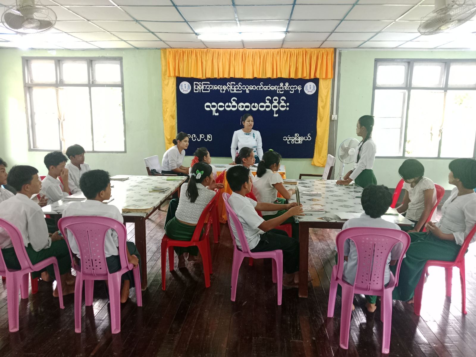 စာဖတ်ဝိုင်းအပြီးတွင် ပြန်ကြားရေးနှင့်ပြည်သူ့ဆက်ဆံရေးဦးစီးဌာနမှပြသထားသည့် အသိပညာပေးနံရံကပ်စာစောင်များကို စိတ်ပါဝင်စားစွာလေ့လာကြည့်ရှု့ကြကြောင်းသိရသည်၊၊