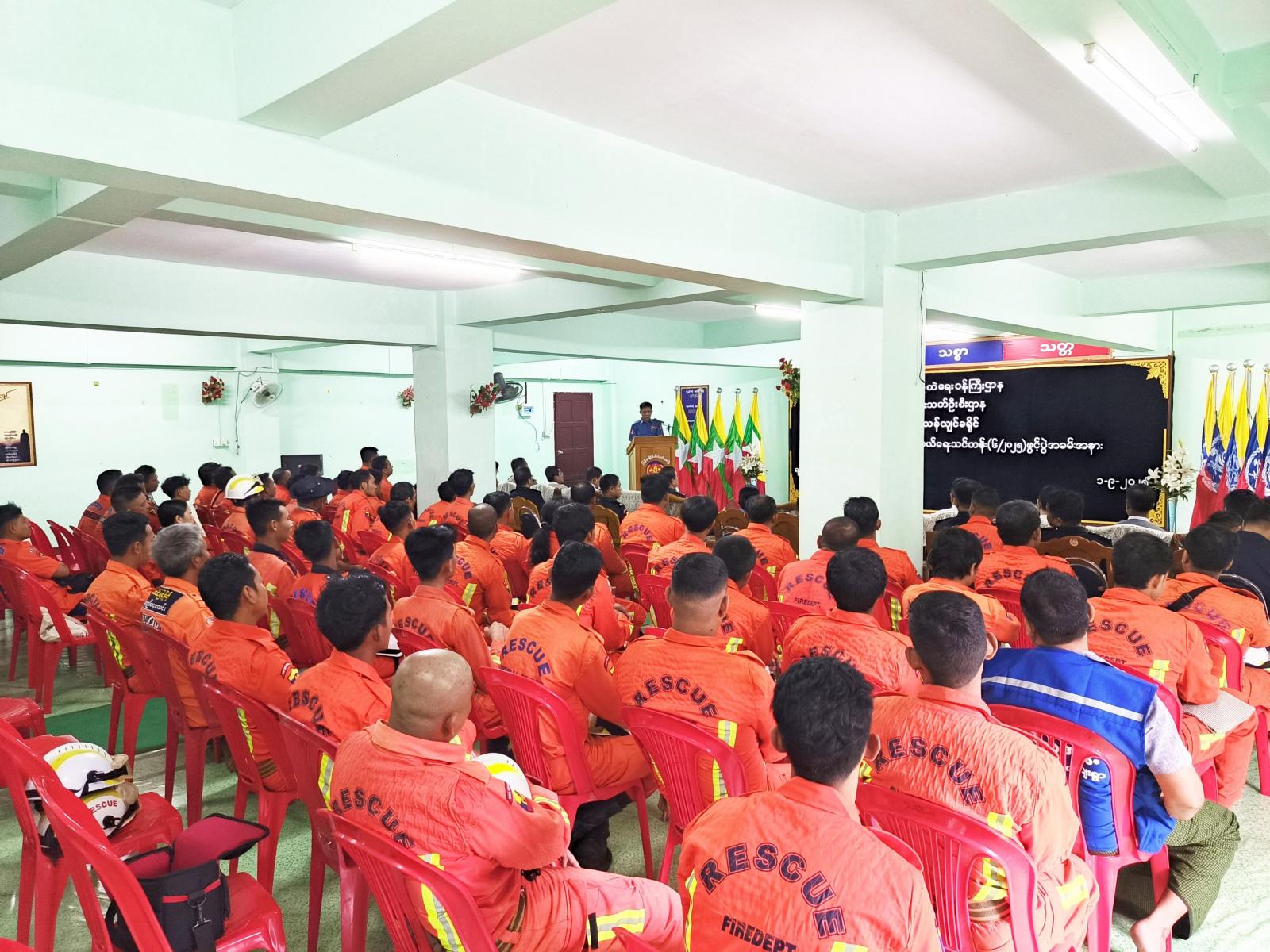 ပြည်ထဲရေးဝန်ကြီးဌာန၊ မီးသတ်ဦးစီးဌာနမှကြီးမှူးဖွင့်လှစ်သော ခရိုင်အဆင့်ရှာဖွေကယ်ဆယ်ရေးသင်တန်း(၆/၂၀၂၅)ဖွင့်ပွဲကို ယမန်နေ့ နံနက်(၉)နာရီတွင် သန်လျင်မြို့ရှိ ခရိုင်မီးသတ်ဦးစီးဌာနအစည်းအဝေးခန်းမ၌ ကျင်းပခဲ့သည်။