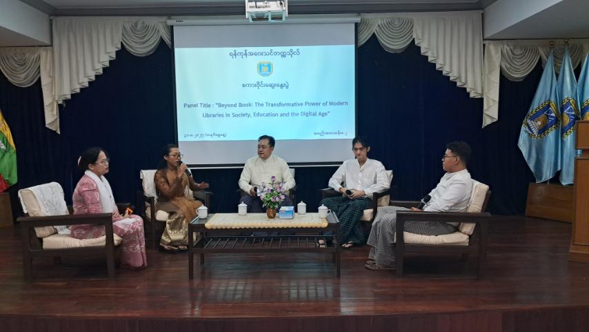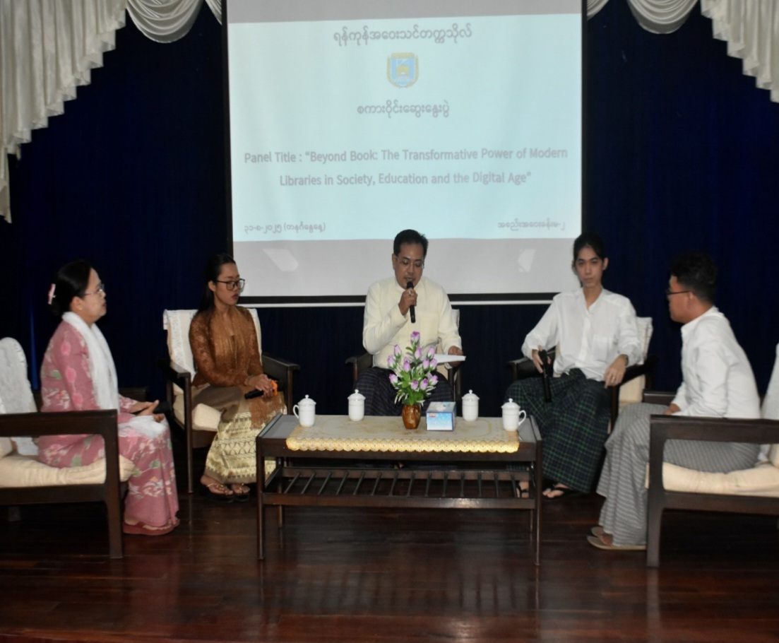 ရန်ကုန်တိုင်းဒေသကြီး၊ ကမာရွတ်ခရိုင်၊ ကမာရွတ်မြို့နယ်၊ ရန်ကုန်အဝေးသင်တက္ကသိုလ်တွင် စာအုပ်များအပြင် လူ့အသိုင်းအဝိုင်း၊ ပညာရေးနှင့် ဒီဂျစ်တယ်ခေတ်တွင် ခေတ်မီစာကြည့်တိုက်များ၏ပြောင်းလဲနိုင်စွမ်း "Beyond Books: The Transformative Power of Modern Libraries in Society, Education, and the Digital Age" ခေါင်းစဉ်ဖြင့် စကားဝိုင်းဆွေးနွေးပွဲကို ဩဂုတ်လ ၃၁ ရက်နေ့ နံနက် ၈ နာရီက အစည်းအဝေးခန်းမ(၂)၌ ကျင်းပခဲ့သည်။