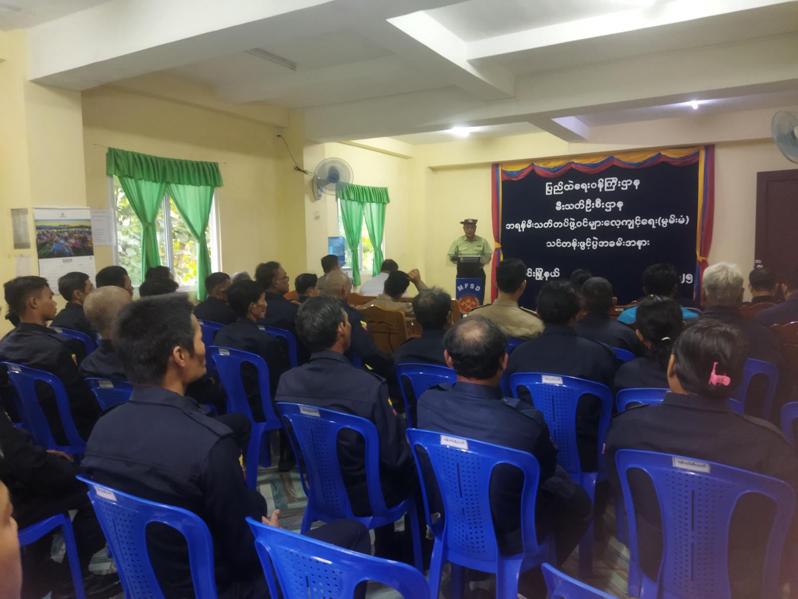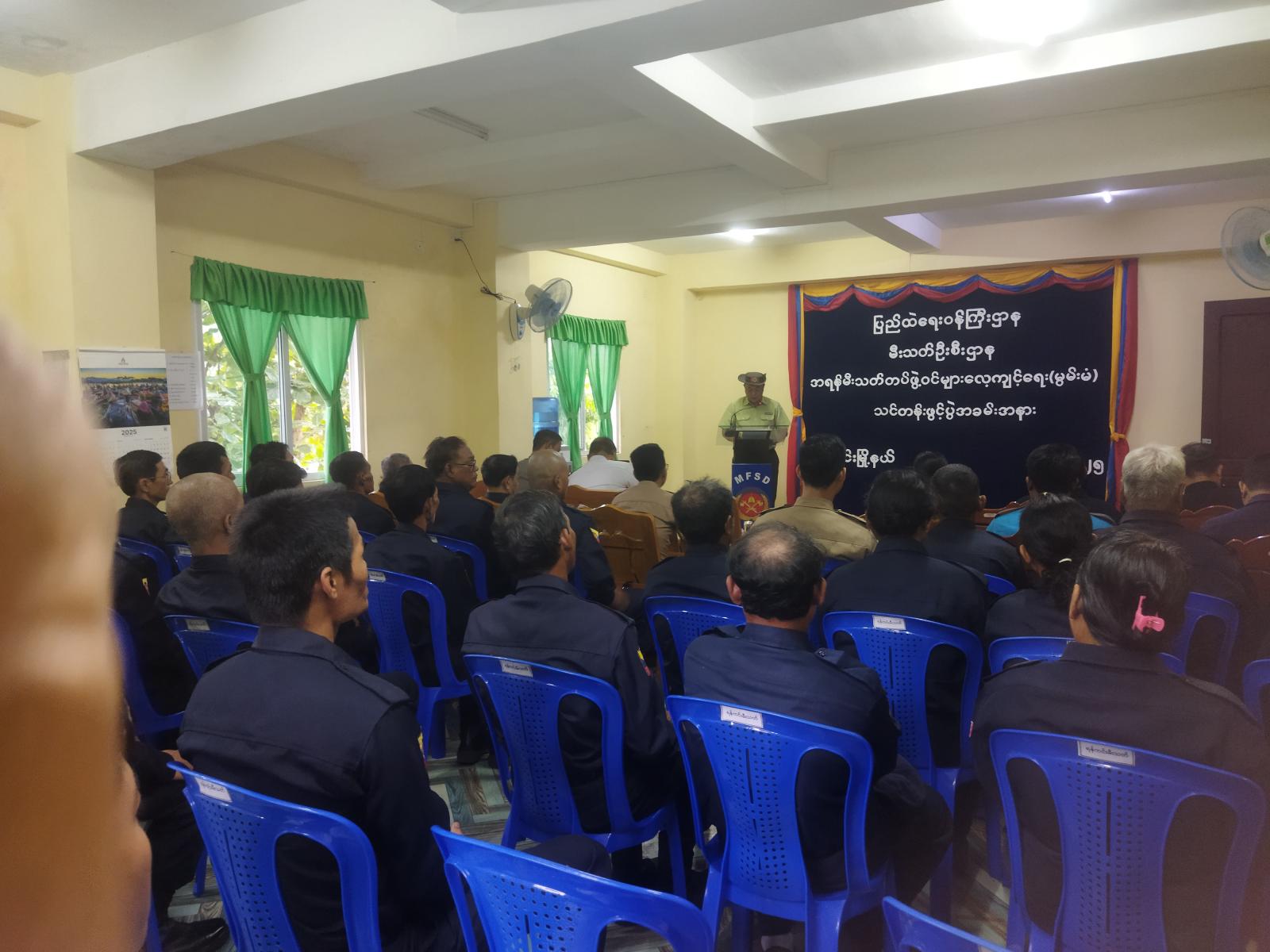 အဆိုပါသင်တန်းဖွင့်ပွဲအခမ်းအနားသို့ မြို့နယ်စီမံခန့်ခွဲရေးနှင့် အုပ်ချုပ်ရေးကော်မတီဥက္ကဋ္ဌ ဦးမင်းမင်းလတ်နှင့်အဖွဲ့ဝင်များ၊ ဌာနဆိုင်ရာအကြီးအကဲများ၊ မြို့ နယ်မီးသတ်ဦးစီးမှူး ဦးထိန်လင်းနှင့် မီးသတ်တပ်ဖွဲ့ဝင်များ၊ အရန်မီးသတ်တပ်ဖွဲ့ဝင်များတက်ရောက်ခဲ့ကြပြီး သင်တန်းကို စက်တင်ဘာ ၁ ရက်မှ စက်တင်ဘာ ၂၆ ရက်နေ့အထိ ရက်သတ္တပတ် ၄ ပတ်ကြာ ဖွင့်လှစ်သွားမည်ဖြစ်ကြောင်း သိရသည်။