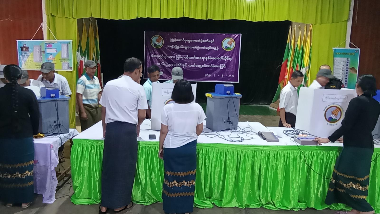 ပဲခူးတိုင်းဒေသကြီး၊ နတ်တလင်းခရိုင်၊ သဲကုန်းမြို့နယ်အတွင်းရှိ မဲဆန္ဒရှင်ပြည်သူများအား ၂၀၂၅ ခုနှစ် ပါတီစုံဒီမိုကရေစီအထွေထွေရွေးကောက်ပွဲတွင် မဲလက်မှတ်ဖြင့် မဲပေးခြင်းစနစ်အစား အီလက်ထရောနစ်မဲပေးစက်ဖြင့် မဲပေးနိုင်ရေးအတွက် မြန်မာအီလက်ထရောနစ်မဲပေးစက်(MEVM)ဆိုင်ရာ အသိပညာပေးခြင်းဟောပြောပွဲနှင့် လက်တွေ့စမ်းသပ်ဆန္ဒမဲပေးခြင်လုပ်ငန်းကို ယနေ့နံနက်(၁၀)နာရီအချိန်က သဲကုန်းမြို့နယ်အထွေထွေအုပ်ချုပ်ရေးဦးစီးဌာန အစည်းအ ဝေးခန်းမ၌ ကျင်းပဆောင်ရွက်ခဲ့ကြောင်းသိရသည်။