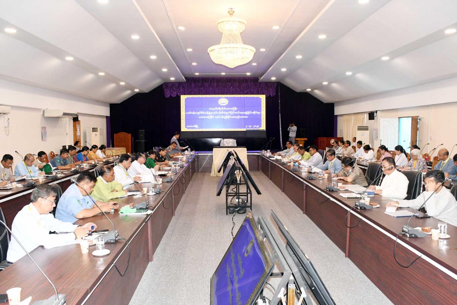 ထို့နောက်တိုင်းဒေသကြီးပတ်ဝန်းကျင်ထိန်းသိမ်းရေးဦးစီးဌာန ညွှန်ကြားရေးမှူးက ပတ်ဝန်းကျင် စီမံခန့်ခွဲမှုလုပ်ငန်းစီမံချက် ပြင်ဆင်ရေးဆွဲခြင်းဆိုင်ရာနှင့်ပတ်သက်၍ ဆောင်ရွက်ထားရှိမှုနှင့် ရှေ့ဆက်ဆောင်ရွက်မည့် လုပ်ငန်းများအားရှင်းလင်းတင်ပြသည်။ ဆက်လက်၍ဌာနဆိုင်ရာတာဝန်ရှိသူများက ဖြည့်စွက်ဆွေးနွေးရာ တိုင်းဒေသကြီး သယံဇာတ ရေးရာဝန်ကြီး က ညှိနှိုင်းဆောင်ရွက်ပေးခဲ့သည်။