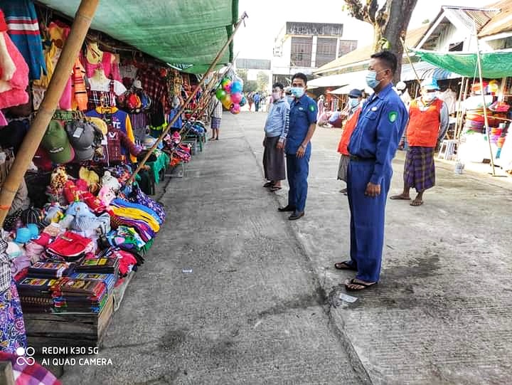 ထိုသို့ စစ်ဆေးရာတွင် မြို့နယ် စည်ပင်သာယာရေးအဖွဲ့ တာဝန်ရှိသူများ၊ မြို့မဈေးကော်မတီအဖွဲ့များ ဦးဆောင်၍ ဈေးရောင်းသူ များတွင် Mask နှင့် Face Shield တပ်ဆင်ခြင်း ရှိ/မရှိကို လိုက်လံစစ်ဆေးကြပြီး မတပ်ဆင်ပါက ဒဏ်ကြေးသတ်မှတ် ဆောင်ရွက်လျက်ရှိကြောင်း၊ ဈေးဝယ်သူများအားလုံးလည်း Mask တပ်ဆင်ပြီးမှ ဈေးအတွင်း ဝင်ရောက်စေကြောင်း၊ ယခုရက်ပိုင်းအတွင်း ဈေးဆိုင်များအားလုံးကို ပြန်လည်ဖွင့်လှစ် ရောင်းချခြင်းပြုထားသော်လည်း ကိုဗစ်-၁၉ ရောဂါ ကာကွယ်ရေး အတွက် ဆိုင်များအားလုံး နံနက် ၆ နာရီမှ မွန်းလွဲ ၂ နာရီအထိသာ ရောင်းချခွင့်ပြုထားကြောင်း သိရသည်။