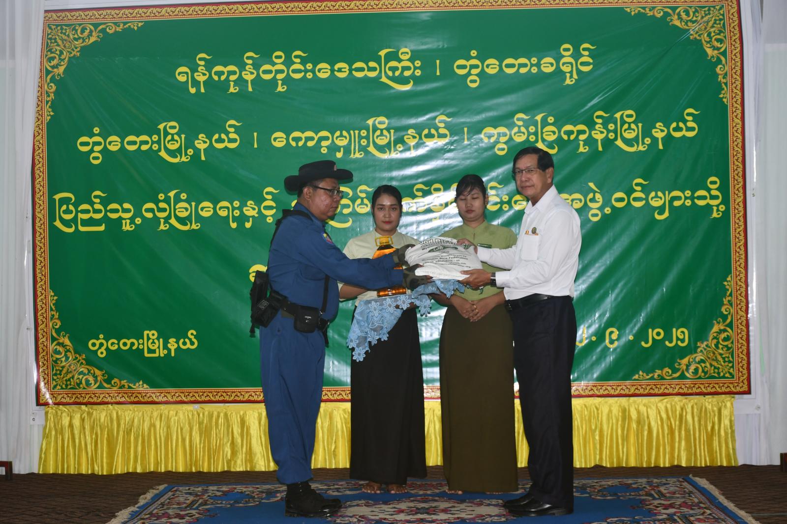 ရန်ကုန်တိုင်းဒေသကြီးအတွင်းရှိ တွံတေးခရိုင်နှင့်မင်္ဂလာဒုံခရိုင်တို့မှ လုံခြုံရေးအဖွဲ့ဝင်များသို့ ဆန်နှင့်ဆီပေးအပ်ပွဲအခမ်းအနားကို ယမန်နေ့နံနက်ပိုင်းက သတ် မှတ်နေရာအသီးသီးတွင် ကျင်းပခဲ့သည်။