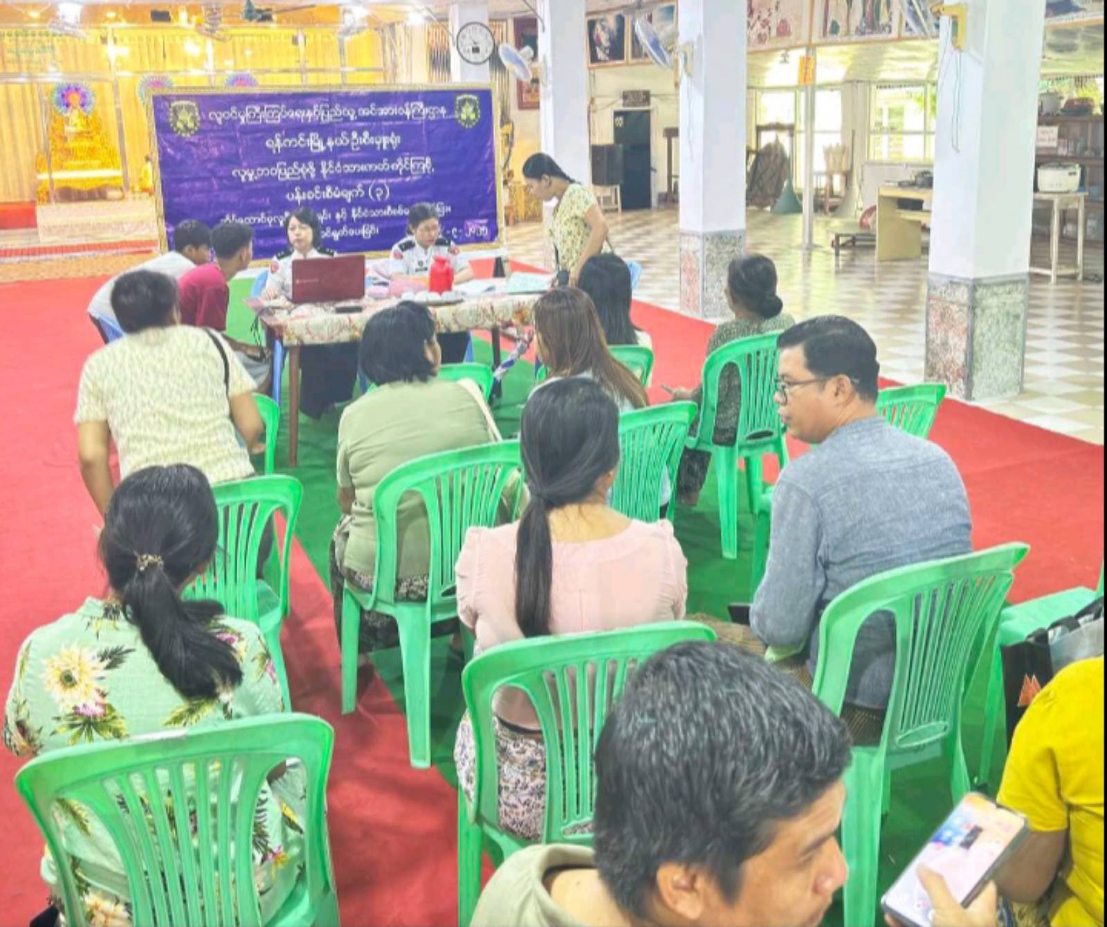 ရန်ကုန်တိုင်းသေကြီး၊ သင်္ဃန်းကျွန်းခရိုင်၊ ရန်ကင်းမြို့နယ်၊ အမှတ်(၅)ရပ်ကွက်နေပြည်များအား ပန်းခင်းအဆင့်(၃)စီမံချက်ဖြင့်အသက် ၁၆ နှစ်မှ ၁၈ နှစ်ကြား၊ အသက် ၁၈ နှစ်အထက် နိုင်ငံသားစိစစ်ရေးကတ်ပြားမရှိသူများအား နိုင်ငံသားစိစစ်ရေးကတ်ထုတ်ပေးခြင်းကို ယမန်နေ့နံနက်ပိုင်းက ကွင်းဆင်းဆောင်ရွက်ပေးခဲ့သည်။