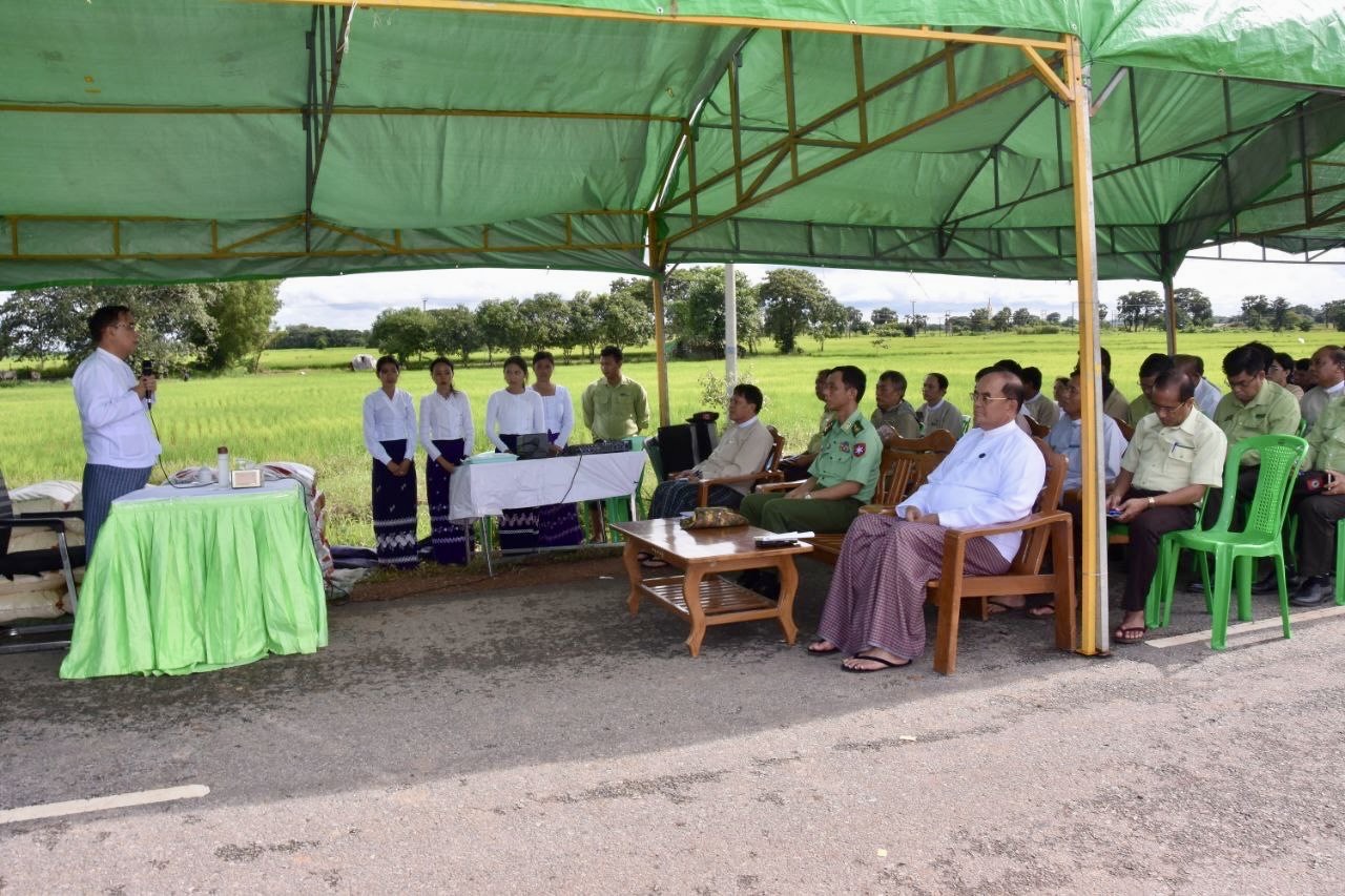 ရှေးဦးစွာ ပဲခူးတိုင်းဒေသကြီးဝန်ကြီးချုပ် ဦးမျိုးဆွေဝင်းသည် ပဲခူးမြို့နယ်အတွင်းရှိ မိုးစပါးစိုက်တောင်သူများနှင့်တွေ့ဆုံ၍ ပဲခူးတိုင်းဒေသကြီးအတွင်း မိုးစပါးစိုက်ဧက(၂၆)သိန်းကျော်ရှိပြီး ယခင်နှစ်က စိုက်ဧက(၁၄)သိန်းကျော် ပန်းတိုင်အထွက်နှုန်းရရှိခဲ့သဖြင့် မိုးစပါးစိုက်ဧကအားလုံး၏(၅၅)ရာခိုင်နှုန်းကျော် မိုးစပါးပန်းတိုင်အထွက်နှုန်းရရှိခဲ့ကြောင်း၊ ယခုနှစ်တွင်လည်း မိုးစပါးစိုက်ဧကများ ပန်းတိုင်အထွက်နှုန်းပိုမိုတိုးတက်ရရှိစေရေး ဘက်ပေါင်းစုံမှနည်းလမ်းပေါင်းစုံဖြင့် ပံ့ပိုးဆောင်ရွက်ပေးလျက်ရှိရာ တောင်သူများအနေဖြင့်လည်း စိုက်ပျိုးသီးနှံအလိုက် ပန်းတိုင်အထွက်နှုန်းရရှိမှသာ မိသားစုဝင်ငွေတိုးတက်လာမှာဖြစ်ကြောင်း၊ ပဲခူးတိုင်းဒေသကြီးသည် ကျေးလက်နေပြည်သူများပြားပြီး စိုက်ပျိုးရေးနှင့်မွေးမြူရေးကို အဓိကထားလုပ်ကိုင်နေရသဖြင့် ကျေးလက်နေတောင်သူများ၏ လူမှုစီးပွားဘဝဖွံ့ဖြိုးတိုးတက်ရေးကို အလေးထားဖြည့်ဆည်းပေးလျက်ရှိရာ တစ်ဧကစိုက်ပျိုးစရိတ်သက်သာစေရေးအတွက် ဒေသတွင်း Drum Seeder များထုတ် လုပ်၍ ချေးငွေဖြင့်အရစ်ကျရောင်းချပေးသွားမှာဖြစ်ကြောင်း၊ နိုင်ငံတော်မှပေးအပ်သည့်ဓါတ်မြေဩဇာများကို တောင်သူကိုယ်တိုင်လုပ်သဘာဝမြေဩဇာဖြင့် အချိုးညီအချိန်ကိုက်ရောစပ်ကြဲပက်သွားရမှာဖြစ်ပြီး မြေလပ်မရှိသီးနှံစိုက်စွမ်းအား၊ သီးထပ်စွမ်းအားတိုးတက်စေရေးကြိုးစားဆောင်ရွက်သွားရမှာဖြစ်ကြောင်း၊ ရေ၊ မြေ၊ သဘာဝနှင့်ကိုက်ညီသည့် မျိုးကောင်းမျိုးသန့်များကို ရွေးချယ်စိုက်ပျိုးသွားရန်နှင့် ပန်းတိုင်အထွက်နှုန်းရရှိရေး မျိုး၊ မြေ၊ ရေ၊ နည်း ပြည့်စုံကောင်းမွန်စေရေးအလေးထားဆောင်ရွက်သွားကြစေလိုကြောင်းနှင့် မိုးစပါးဖျက်ပိုးဖြစ်သည့် ရွှေခရုနှိမ်နင်းရေးအတွက် တောင်သူအစုအဖွဲ့စနစ်ဖြင့် ဘဲမွေးမြူ၍ မိုးစပါးစိုက်ခင်းအတွင်း လွတ်ကျောင်းစနစ်ဖြင့်ဆောင်ရွက်သွားကြရန် လမ်းညွှန်မှာကြားခဲ့သည်။