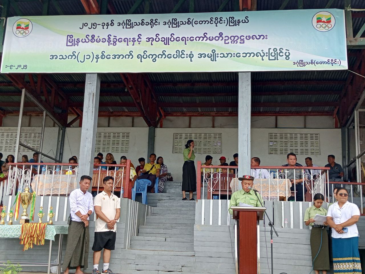 ထို့နောက် အားကစားသမားများက အားကစားသစ္စာဓိဌာန်များရွတ်ဆိုကြပြီး မြို့နယ်စီမံခန့်ခွဲရေးနှင့်အုပ်ချုပ်ရေးကော်မတီဥက္ကဋ္ဌဦးစန်းလွင်နှင့် အဖွဲ့ဝင်များက ပြိုင်ပွဲဝင် အားကစားသမားများအား ရင်းရင်းနှီးနှီးလိုက်လံနှုတ်ဆက်နှုတ်ဆက်ကြကြောင်းနှင့် အဆိုပါဘောလုံးပြိုင်ပွဲကို အသင်းပေါင်း(၂၅)သင်းဖြင့် အုပ်စု(၈)စု ပတ်လည်ကစားမှာဖြစ်ပြီး စက်တင်ဘာ ၁ ရက်နေ့မှ ၂၈ ရက်နေ့အထိ ယှဉ်ပြိုင်ကစားသွားကြမည်ဖြစ်ကြောင်း သိရှိရသည်။