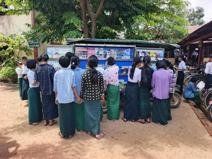 ပဲခူးတိုင်းဒေသကြီး၊ ကျောက်ကြီးမြို့နယ်၊ ပဲခူးရပ်ကွက်ရှိအခြေခံပညာအထက်တန်းကျောင်းခွဲ၌ မြို့နယ်ပြန်ကြားရေးနှင့်ပြည်သူ့ဆက်ဆံရေးဦးစီးဌာနမှ ယမန်နေ့ နံနက်ပိုင်းတွင် သုံးဘီးမော်တော်ယာဥ်ဖြင့် စာအုပ်/စာစောင်ပြပွဲပြုလုပ်ခဲ့ကြောင်း သိရသည်။