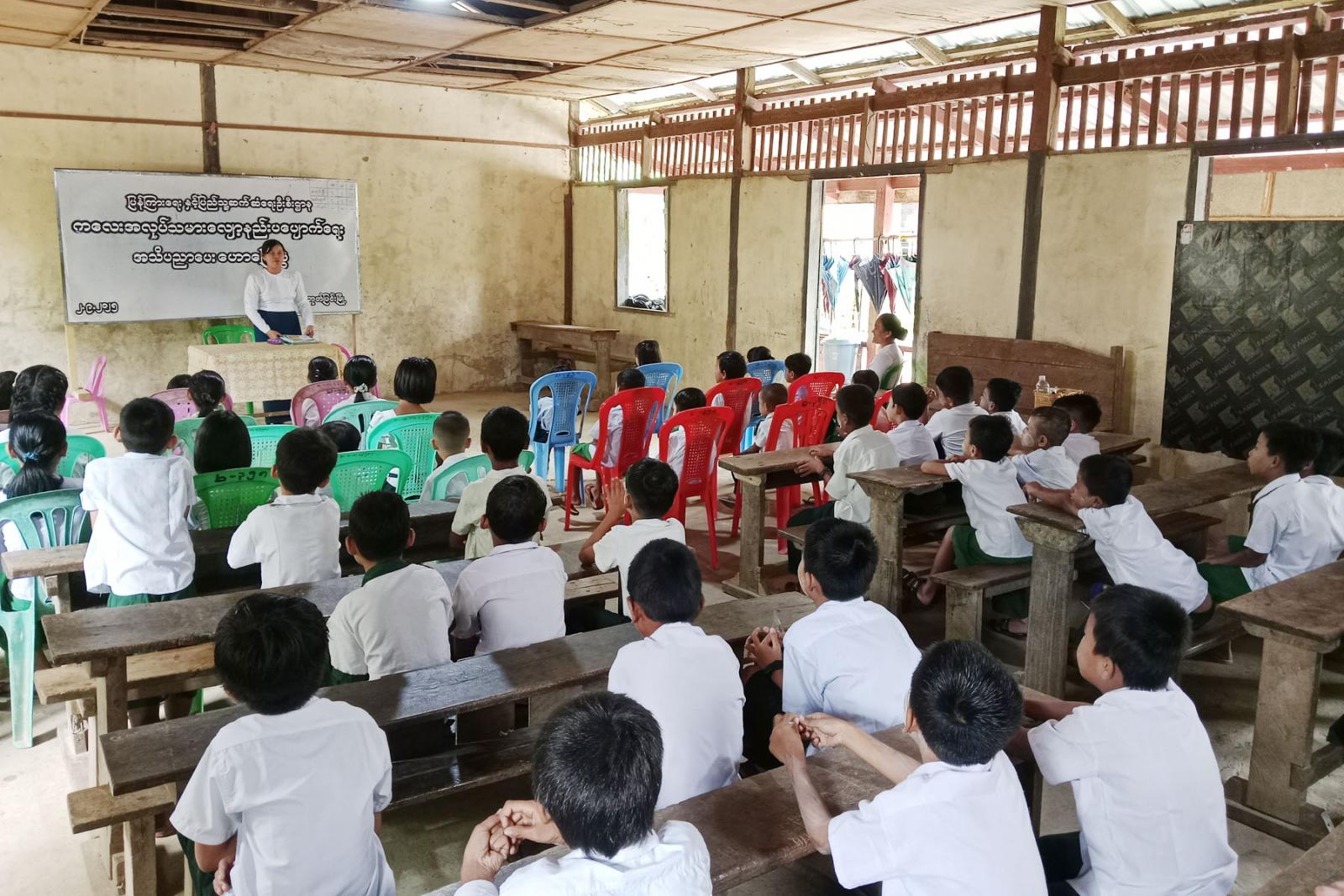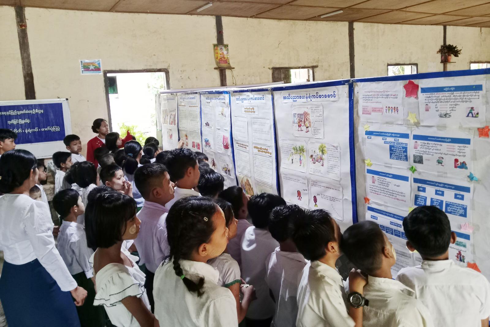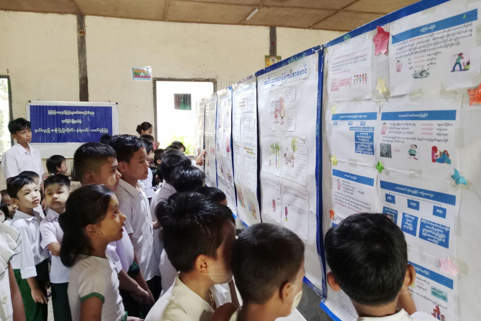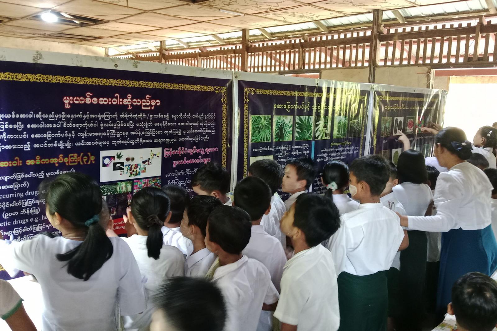 ယင်းနောက် ကလေးအလုပ်သများလျော့နည်းပပျောက်ရေးနှင့်ပတ်သက်သည့် အသိပညာပေး နံရံကပ်စာစောင်များ၊ မူးယစ်ဆေးဝါအန္တရာယ်အသိပညာပေးနံရံကပ်စာစောင်များကို ပြသထားရာ ကျောင်းသား ကျောင်းသူများက လေ့လာဖတ်ရှုခဲ့ကြကြောင်းသိရသည်။