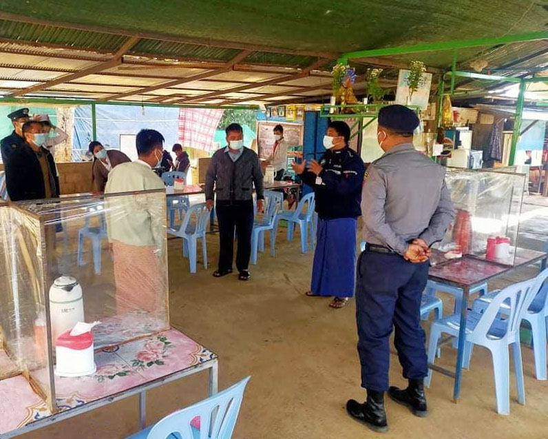 ကွင်းဆင်းစစ်ဆေးရာတွင် စားသောက်ဆိုင်များနှင့် လက်ဖက်ရည်ဆိုင်များအား ကူးစက် ရောဂါဖြစ်ပွားနေသည့် ကာလအတွင်း ပါဆယ်စနစ်(Take Away) ဖြင့်သာ ရောင်းချခွင့်ပြုထားခဲ့ရာ ယခုတွင် ကိုဗစ်-၁၉ ရောဂါကြိုတင် ကာကွယ်ရေး သတ်မှတ် စည်းကမ်းချက်များ နှင့်အညီ ကျန်းမာရေးစစ်ဆေးချက်များအရ A အဆင့် (၅)ဆိုင်နှင့် B အဆင့် (၆)ဆိုင် ရရှိသော စားသောက်ဆိုင် နှင့် လက်ဖက်ရည်ဆိုင်များအား ဆိုင်ထိုင်ရောင်းချခွင့်ပြုနိုင်ရေးအတွက် ကျန်းမာရေးနှင့်အားကစားဝန်ကြီးဌာနမှ ထုတ်ပြန်ထား သော ညွှန်ကြားချက်များနှင့်အညီ ပြင်ဆင်ထားရှိရန်များ၊ ဆိုင်ပိုင်ရှင်၊ ဆိုင်ဝန်ထမ်းများနှင့် စားသုံးသူများ လိုက်နာရမည့် စည်းကမ်းများကို အသိပညာပေး ပြောကြားပြီး ကိုဗစ်-၁၉ ရောဂါကြိုတင်ကာကွယ်ရေးဆိုင်ရာ စည်းကမ်းချက်များနှင့် ဆောင်ရွက် ထားရှိမှု အခြေအနေများကို မြေပြင်ကွင်းဆင်း စစ်ဆေးခဲ့ကြောင်း သိရသည်။