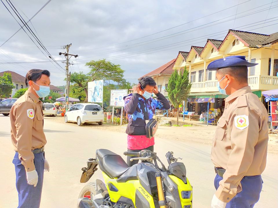 ထိုသို့ဆောင်ရွက်ရာတွင် နှာခေါင်းစည်းများ တပ်ဆင်ခြင်းမရှိပါက နှာခေါင်းစည်းများ တပ်ဆင်နိုင်စေရန် အခမဲ့ပေးဝေပြီး နောင်တွင် လိုအပ်ချက်ရှိ၍ နေအိမ်မှ အပြင်ထွက်ပါက နှာခေါင်းစည်းများ တပ်ဆင်၍ သွားလာကြစေရန်၊ အထူးသတိပြုရမည့် ဗီဇပြောင်း ကိုရိုနာဗိုင်းရပ်စ်နှင့် “ကိုဗစ်-၁၉ ရောဂါအား ပါးစပ်နှင့် နှာခေါင်းစည်း(Mask)ကို စနစ်တကျတပ်ဆင်၍ ကာကွယ်ပါ” စသည့် ကျန်းမာရေးနှင့်အားကစားဝန်ကြီးဌန၏ ကိုဗစ်-၁၉ ဆိုင်ရာ တိုက်တွန်းနှိုးဆော်ချက်များကို အသိပညာပေး ဆောင်ရွက်ခဲ့ကြောင်း သိရသည်။