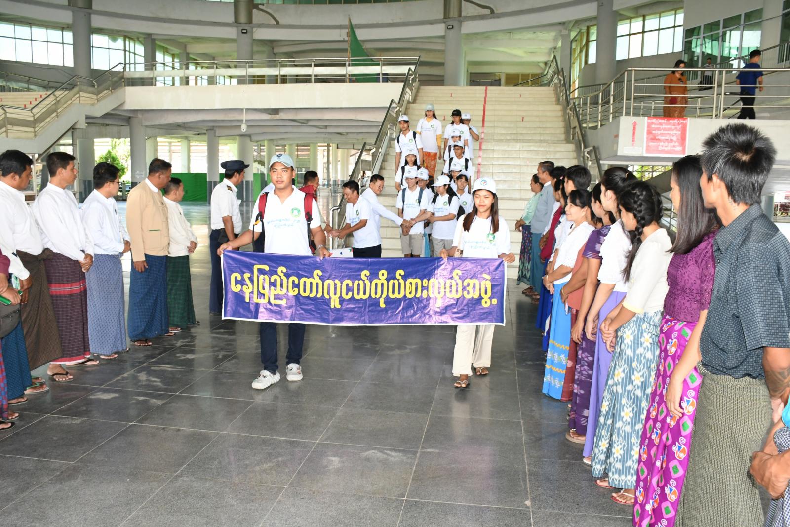 မြန်မာ့အနာဂတ်မျက်နှာ လူငယ်မဟာဗျူဟာဖိုရမ် -၂၀၂၅ သို့ တက်ရောက်ခဲ့သည့် နေပြည်တော် လူငယ်ကိုယ်စားလှယ်အဖွဲ့အား နေပြည်တော်ကောင်စီဝင်ဦးမြင့်စိုး၊ ဌာနဆိုင်ရာများနှင့် တာဝန်ရှိသူများက နေပြည်တော်ဘူတာကြီး၌ ကြိုဆိုနှုတ်ဆက်ခဲ့ကြသည်။