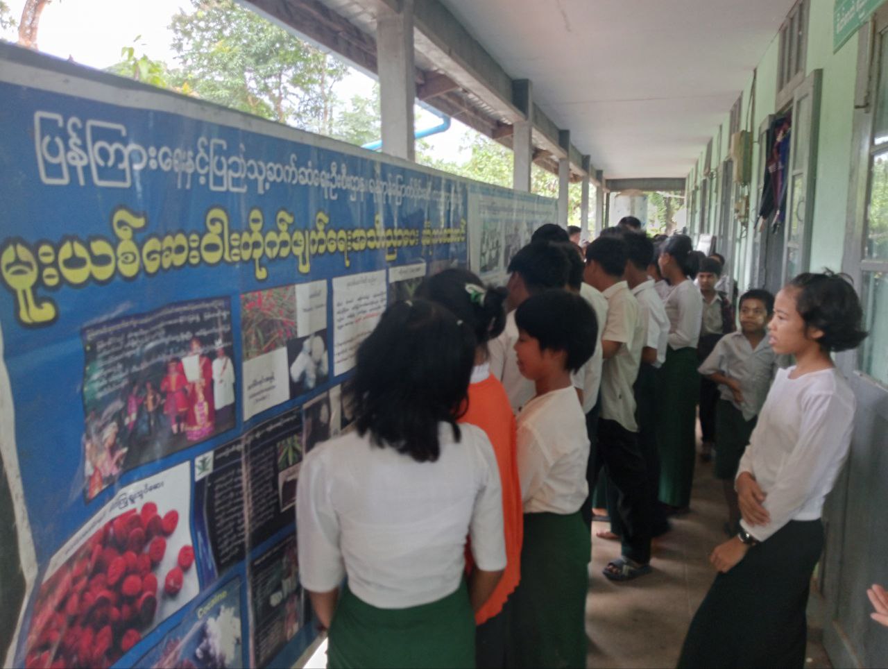 ထို့နောက် ကျောင်းသား၊ ကျောင်းသူများက ပြန်ကြားရေးနှင့်ပြည်သူ့ဆက်ဆံရေးဦးစီးဌာနကပြသထားသည့် အသိပညာပေးနံရံကပ်စာစောင်များနှင့် စာအုပ်၊ စာ စောင်များကို စိတ်ပါဝင်စားစွာလေ့လာကြည့်ရှုခဲ့ကြောင်း သိရှိရသည်။