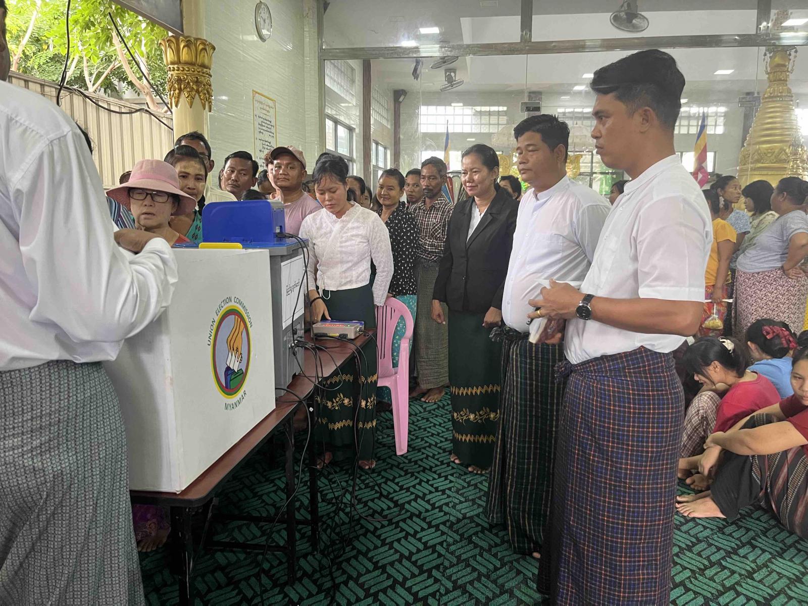 လွတ်လပ်ပြီးတရားမျှတသော ပါတီစုံဒီမိုကရေစီစနစ်အောင်မြင်ရေးအတွက် မဲပေးစက် အသုံးပြု၍ မဲပေးခြင်း လုပ်ငန်းစဉ်အဆင့်ဆင့်အား ပြည်သူများ သိရှိနားလည်စေရန်ရည်ရွယ်၍ မန္တလေးတိုင်းဒေသကြီး ချမ်းမြသာစည်မြို့နယ် မြို့သစ်အမှတ်(၁)ရပ်ကွက်တွင် မဲပေးစက်ဆိုင်ရာ အသိပညာပေးခြင်းနှင့်လက်တွေ့စမ်းသပ်မဲပေးခြင်းအခမ်းအနားကို ယနေ့နံနက် ၉ နာရီခွဲက အေးငြိမ်းပြည်ကျော်ဓမ္မာရုံ၌ ကျင်းပသည်။
