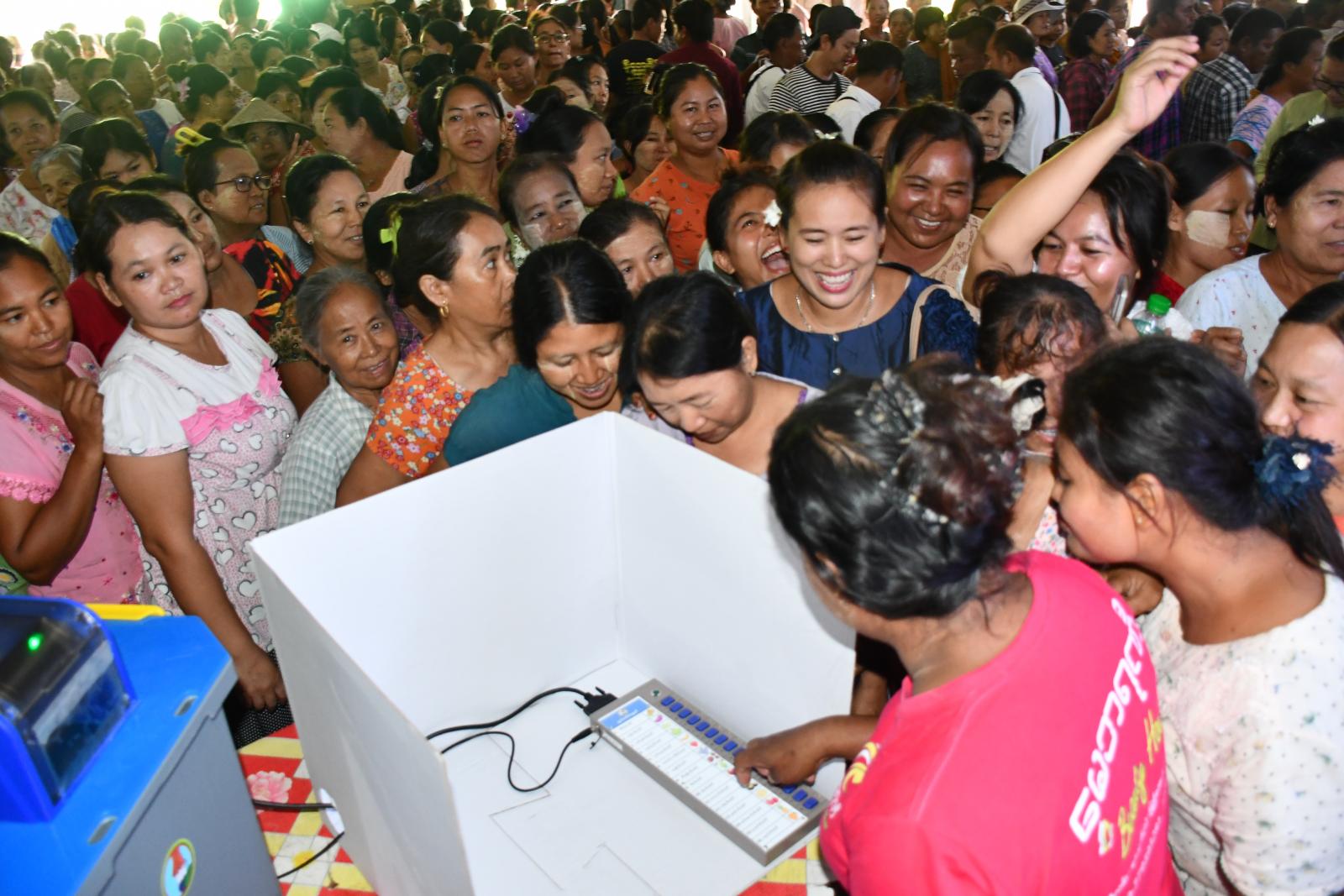 မန္တလေးတိုင်းဒေသကြီး၊ပြည်ကြီးတံခွန်မြို့နယ်(ဂ)ရပ်ကွက်တွင် မဲပေးစက်ဆိုင်ရာ အသိပညာပေးခြင်းနှင့် လက်တွေ့စမ်းသပ်မဲပေးခြင်းအခမ်းအနားကို စက်တင်ဘာ ၃ ရက်က ပဥ္စသုခဓမ္မာရုံ၌ ကျင်းပသည်။