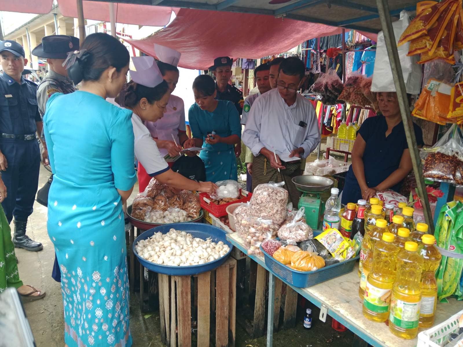 တနင်္သာရီတိုင်းဒေသကြီး ထားဝယ်ခရိုင် သရက်ချောင်းမြို့နယ် စီမံခန့်ခွဲရေးနှင့်အုပ်ချုပ်ရေးကော်မတီအဖွဲ့ဝင်များကြီးကြပ်မှုဖြင့် ဆေးဆိုင်များတွင်ဆေးလာဝယ်သူများအား တီဘီ သံသယလက္ခဏာများနှင့်ပတ်သက်၍ ဆေးရောင်းသူများက သတိပြုမိစေရန်နှင့် ဈေးဆိုင် များတွင် အိုင်အိုဒင်းဆားပါဝင်မှုနှုန်း ကွင်းဆင်းစစ်ဆေးခြင်းများကို စက်တင်ဘာ ၃ ရက်က မြို့ပေါ်ဆေးဆိုင်များ၊ မြို့နယ်စည်ပင်သာယာဈေးမှ ကုန်စုံဆိုင်များ၊ မြို့ပေါ်ကုန်စုံဆိုင်များ အား တာဝန်ရှိသူများက ကွင်းဆင်းစစ်ဆေးသည်။