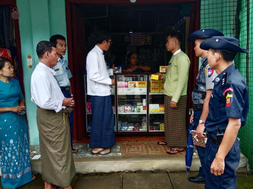 ကွင်းဆင်းစစ်ဆေးရာတွင် မြို့နယ်ပြည်သူ့ကျန်းမာရေးဦးစီးဌာနမှူး ဒေါက်တာဝင်းဇော်ဦးနှင့် ဆရာ/ဆရာမများ၊ မြို့နယ်စည်ပင် သာယာရေးအဖွဲ့ အမှုဆောင်အရာရှိ ဦးတင်စွမ်နှင့် ဝန်ထမ်းများ၊ မြို့နယ်အထွေထွေအုပ်ချုပ်ရေးဦးစီးဌာနမှ ဒုတိယဦးစီးမှူး၊ မြို့နယ်အဆင့် ဌာနဆိုင်ရာတာဝန်ရှိသူများက ဆေးဆိုင်များတွင် ဆေးလာဝယ်သူများအား တီဘီသံသယလက္ခဏာများနှင့်ပတ်သက်၍ သတိပြုမိစေရန် ဆေးရောင်းသူများအား ဆေးဝယ်သူများမှ ရက်ရှည်ချောင်းဆိုးခြင်းများရှိနေပါက မြို့နယ်ဆေးရုံ/ကျန်းမာရေးဌာနသို့ ညွှန့်ပို့ပေးနိုင်ခြင်း အတွက် အသိပညာပေးခြင်းခဲ့ပြီး အာဟာရဖွံ့ဖြိုးရေးရက်သတ္တပတ်လှုပ်ရှားမှု အထိမ်းအမှတ် အိုင်အိုဒင်းချို့တဲ့မှုပပျောက်ရေးအတွက် မြို့နယ်စည်ပင်သာယာဈေးနှင့် ကုန်စုံဆိုင်များတွင် အိုင်အိုဒင်းဆားပါဝင်မှုနှုန်းစစ်ဆေးခြင်းကို မြို့နယ်အစားအသောက်နှင့် ဆေးဝါးကြီးကြပ်ရေး ကော်မတီအဖွဲ့ဝင်များက ကွင်းဆင်းစစ်ဆေးသည်။
