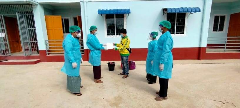 ဆေးရုံဆင်းခွင့်ပြုသည့် အမျိုးသားအား မြို့နယ်အုပ်ချုပ်ရေးမှူး ဦးစိုးမင်းထွဋ်၊ ပြည်နယ်လွှတ်တော်ကိုယ်စားလှယ် ဒေါ်နန်းကောင်ခမ်း၊ မြို့နယ် ရဲတပ်ဖွဲ့မှူးရဲမှူး ဇော်နီချစ်တို့က အားပေးစကားပြောကြားပြီး ပါးစပ်/နှာခေါင်းစည်းများ၊ လက်ဆေးရည်များ ပေးအပ်ခဲ့ကြောင်းနှင့် မြို့နယ်ကျန်းမာရေးဌာနမှူး ဒေါက်တာကျော်ဇင်ထွန်းက ကိုဗစ်- ၁၉ ရောဂါ ကာကွယ်ရေး ကျန်းမာရေးနှင့်အားကစားဝန်ကြီးဌာနက ထုတ်ပြန်ထားသည့် ညွှန်ကြားချက်များအတိုင်း နေထိုင်ရေးတို့ကို ရှင်းလင်းဆွေးနွေးပြောကြားပြီး Quarantine ထားရှိစဉ် စည်းမျဉ်းစည်းကမ်းများနှင့်အညီ နေထိုင်ပြီး ဖြစ်ကြောင်း ထောက်ခံချက် ပေးအပ်ခဲ့သည်။