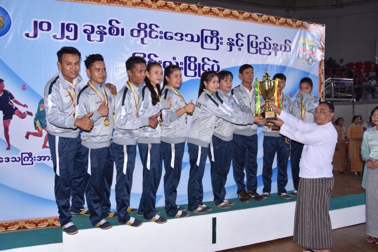 ယင်းနောက် အမျိုးသမီး(၄)ပေါက်တန်းပြိုင်ပွဲတွင် တတိယဆုရရှိသော ပဲခူးတိုင်းဒေသကြီးအသင်းအား တစ်ဦးချင်းဆုတံဆိပ်နှင့် ငွေသားဆု(၇)သိန်းကျပ်အား ပဲခူးတိုင်းဒေသကြီးအစိုးရအဖွဲ့အတွင်းရေးမှူးဦးကျော်စိုးနှင့် အမျိုးသား(၆)ပေါက်တန်းပြိုင်ပွဲတွင် တတိယဆုရရှိသော ပဲခူးတိုင်းဒေသကြီးအသင်းအား တစ်ဦးချင်းဆုတံဆိပ်နှင့် ငွေသားဆု(၇)သိန်းကျပ်ကို တိုင်းရင်းသားရေးရာဝန်ကြီးဦးစောလင်းအောင်ကလည်းကောင်း၊ အမျိုးသမီး(၄)ပေါက်တန်း ပြိုင်ပွဲတွင်ဒုတိယဆုရရှိသော ရန်ကုန်တိုင်းဒေသကြီးအသင်းအား တစ်ဦးချင်းဆုတံဆိပ်နှင့် ငွေသားဆု(၁၀)သိန်းကျပ်ကို လမ်းပန်းဆက်သွယ်ရေးဝန်ကြီးဦတင်ဆွေနှင့် အမျိုးသား (၆)ပေါက်တန်းပြိုင်ပွဲတွင် ဒုတိယဆုရရှိသောမန္တလေးတိုင်းဒေသကြီးအသင်းအား တစ်ဦးချင်းဆုတံဆိပ်နှင့် ငွေသားဆု(၁၀)သိန်းကျပ်ကို လူမှုရေးရာဝန်ကြီးဦးမျိုးအောင်ကလည်းကောင်း၊ အမျိုးသမီး(၄)ပေါက်တန်းပြိုင်ပွဲတွင် ပထမဆုရရှိသော မန္တလေးတိုင်းဒေသကြီးအသင်းအား တစ်ဦးချင်းဆုတံဆိပ်နှင့် ငွေသားဆုကျပ်(၁၅)သိန်းကို သယံဇာတရေးရာဝန်ကြီး ဦးတင်သိန်းနှင့် အမျိုးသား(၆)ပေါက်တန်းပြိုင်ပွဲတွင် ပထမဆုရရှိသော ရန်ကုန်တိုင်းဒေသကြီးအသင်းအား တစ်ဦးချင်းဆုတံဆိပ်နှင့် ငွေသားဆုကျပ်(၁၅)သိန်းကို စီးပွားရေးရာဝန်ကြီးဦးတင်ဦးတို့မှ အသီးသီးချီးမြှင့်ပေးအပ်ကြသည်။
