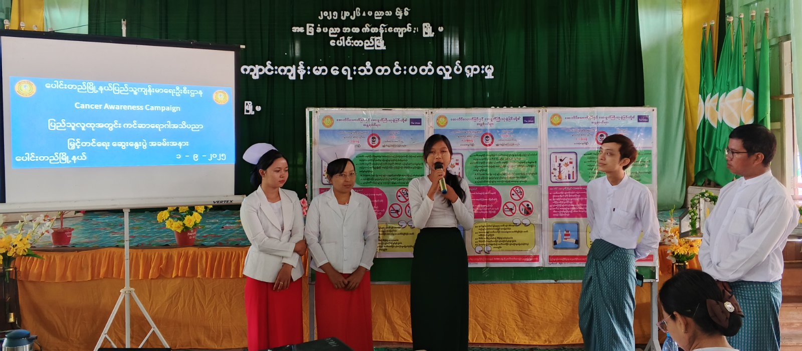 ပဲခူးတိုင်းဒေသကြီး၊ နတ်တလင်းခရိုင်၊ ပေါင်းတည်မြို့နယ် ပြည်သူ့ကျန်းမာရေးဦးစီးဌာနသည် ၂၀၂၅ ခုနှစ်၊ စက်တင်ဘာ ၁ ရက်နေ့မှစတင်၍ ပြည်သူလူထုအ တွင်း ကင်ဆာရောဂါအသိပညာမြှင့်တင်ရေးလှုပ်ရှားမှုများ ဆောင်ရွက်လျက်ရှိရာ စက်တင်ဘာ ၃ ရက်နေ့ နံနက်ပိုင်းက ကျောင်းအခြေပြုလှုပ်ရှားမှုများ ဆောင် ရွက်ခဲ့ကြသည်။