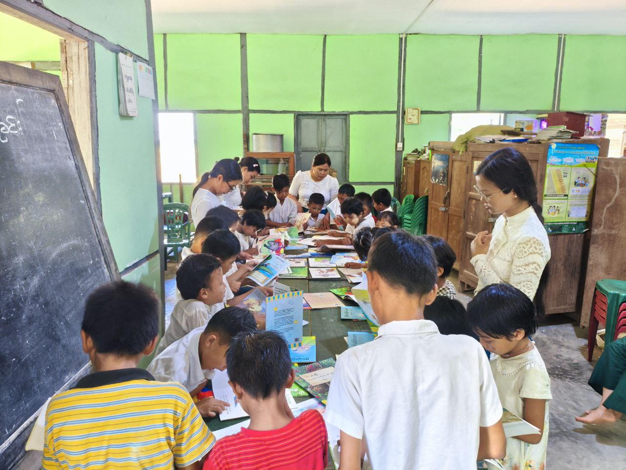 ဆက်လက်၍ ပြန်ကြားရေးနှင့်ပြည်သူ့ဆက်ဆံရေးဦးစီးဌာနဝန်ထမ်းများမှ ကျောင်းသား၊ ကျောင်းသူလေးများကို ရုပ်ပုံပါစာအုပ်ဖြင့်ပုံပြင်ပြောခြင်း၊ စက္ကူပြဇာတ်ဖြင့် ပုံပြင်ပြောပြခြင်းနှင့် စာဖတ်ရှိန်မြှင့်တင်ရေးအတွက် အသိပညာဗဟုသုတရရှိစေမည့် စာအုပ်စာစောင်များကို ဖတ်ရှုစေခြင်းနှင့် အသိပညာပေးနံရံကပ်စာစောင်များ ပြသခြင်းတို့ ဆောင်ရွက်ခဲ့ကြောင်း သိရသည်။